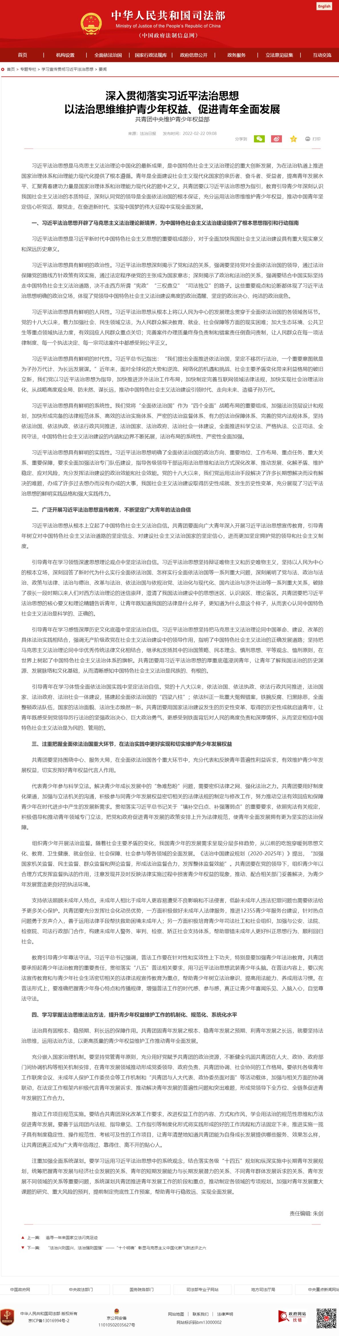 【中国政府法制信息网】深入贯彻落实习近平法治思想 以法治思维维护青少年权益、促进青年全面发展