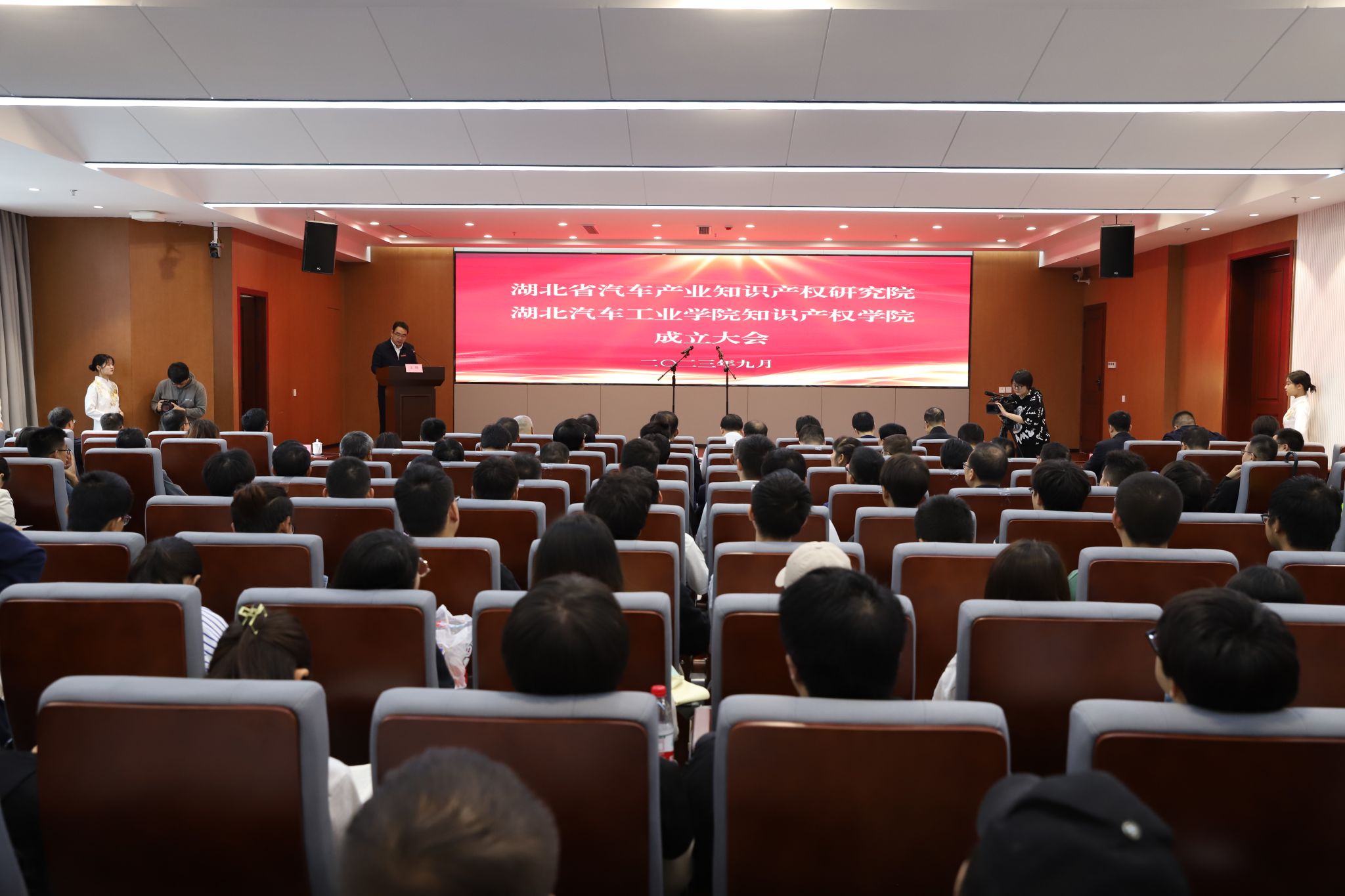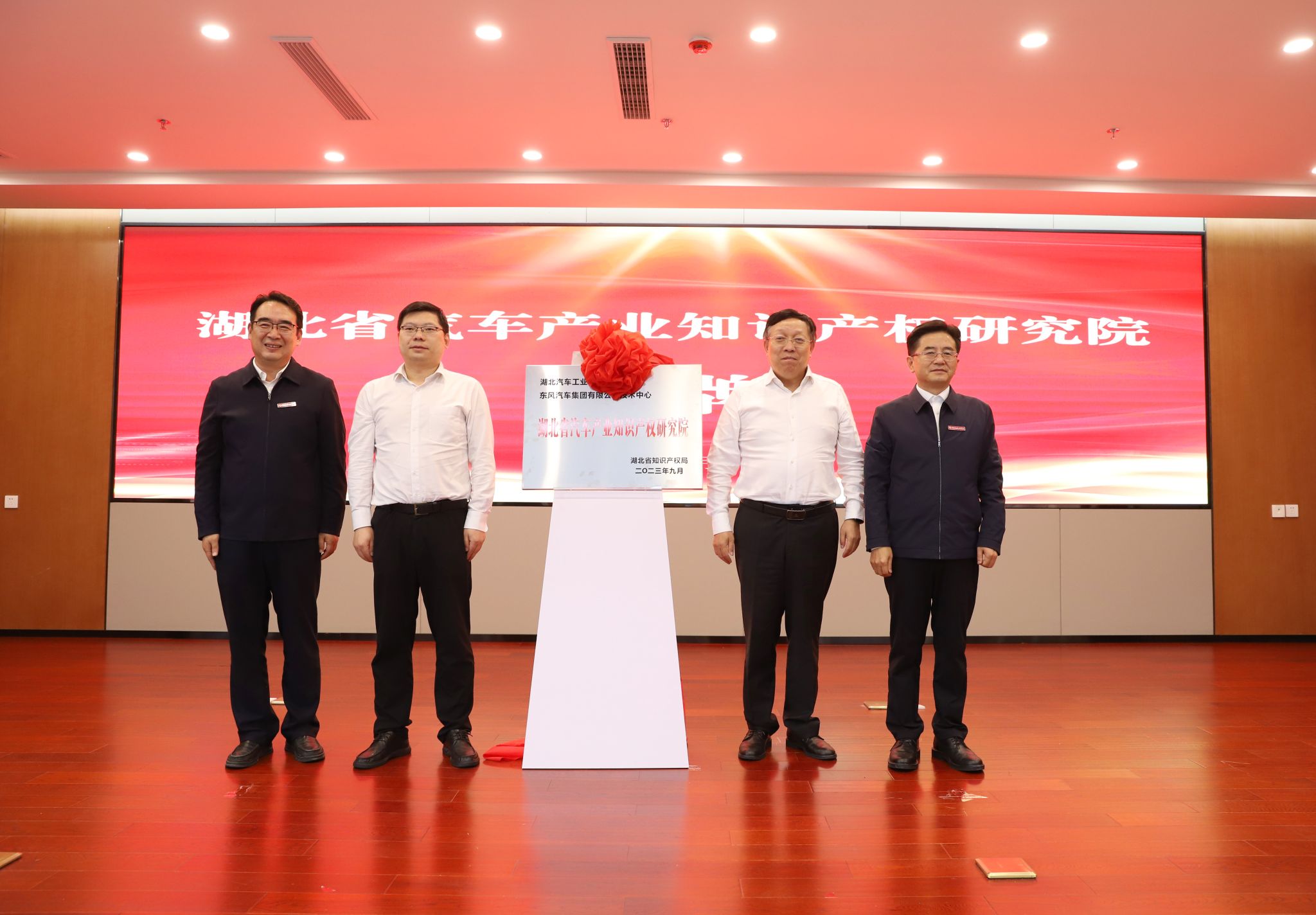 与会领导为beat365在线唯一官网知识产权学院、湖北省汽车产业知识产权研究院揭牌。