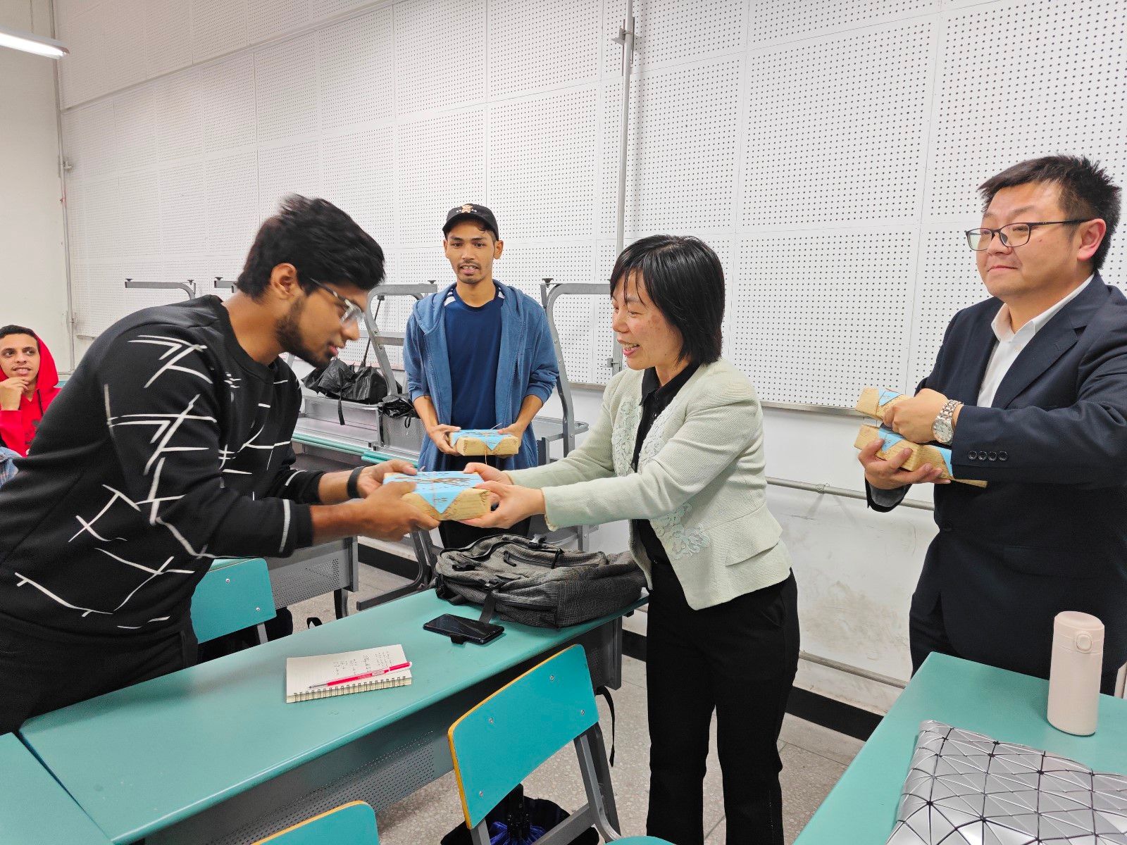 随后,张红霞副校长为全体留学生发放月饼并合影留念。