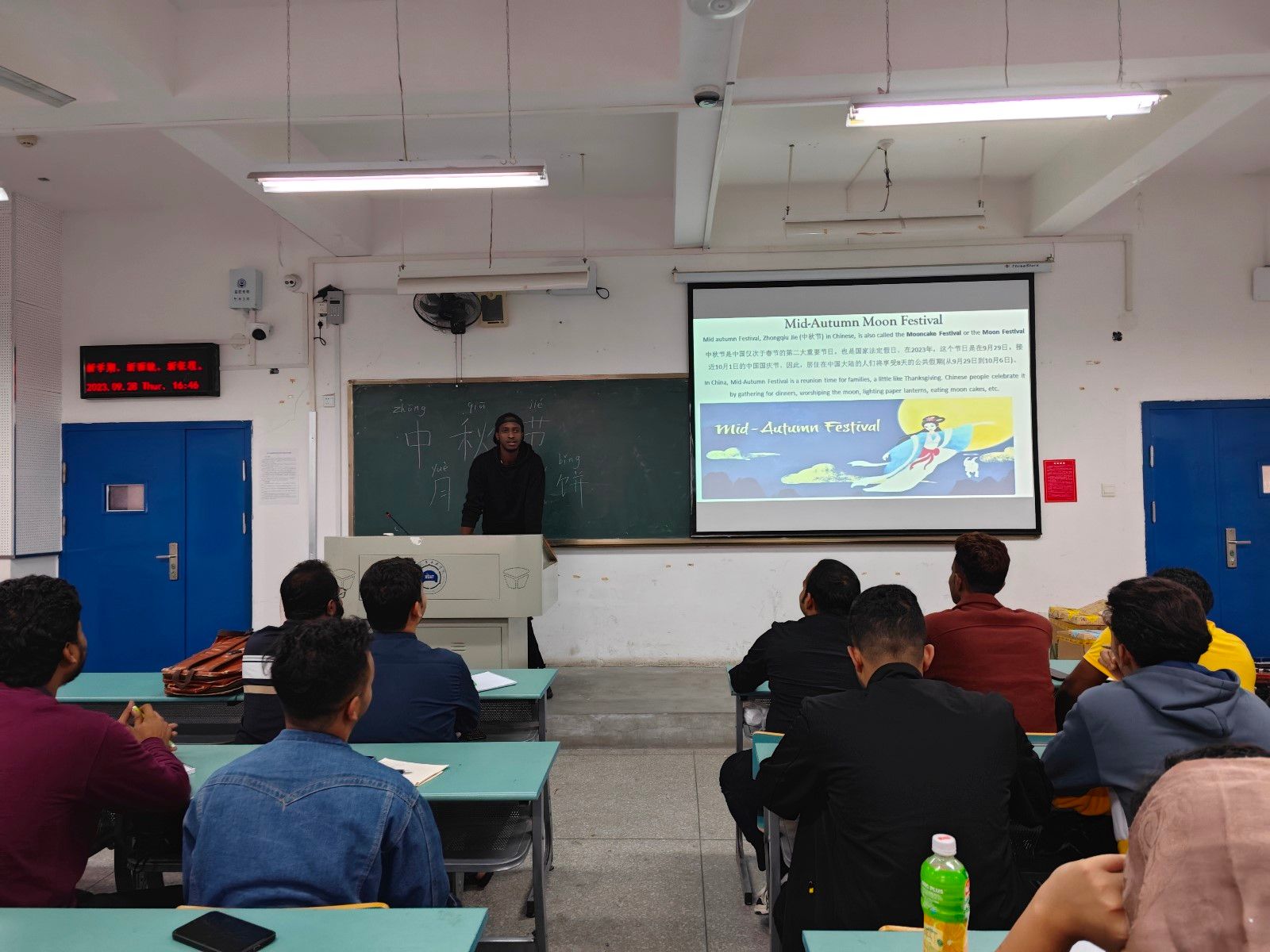 2023级计算机技术专业来华留学研究生卢贝特从中秋节的由来、为什么要庆祝中秋节、如何庆祝中秋节等方面介绍了中秋节蕴含的中国传统文化底蕴和深层历史,并表达了他对同学们、老师们的真挚祝福。