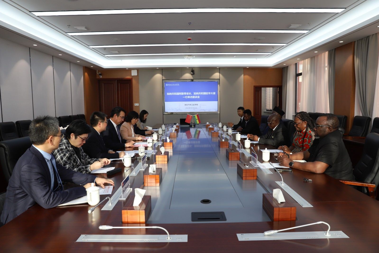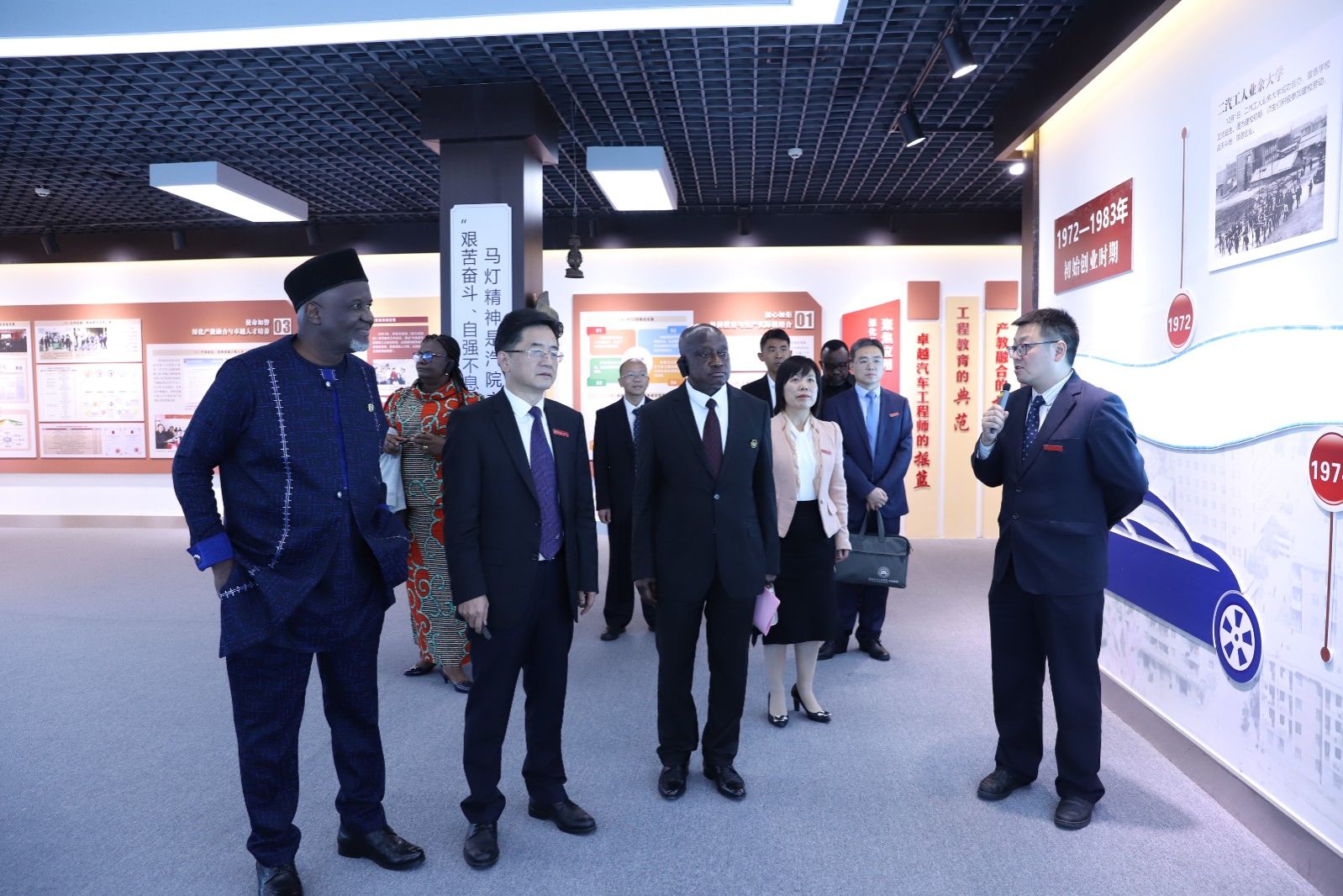 加纳省长和大使一行参观了学校扩建校区(北区)、学校校史馆、大学生方程式车队和科技创新展示中心。校党委书记张文学热情介绍了学校自1972年创办以来50多年的发展历程、办学成就、扩建校区(北区)建设基本情况和学校“三步走”发展战略以及学校科研团队围绕汽车智能化、网联化、轻量化、电动化、共享化领域形成的标志性科技成果,并诚挚地邀请省长一行出席beat365将于年底在阿散蒂省首府库马西市举行的加纳恩克鲁玛科技大学孔子学院揭牌仪式。
