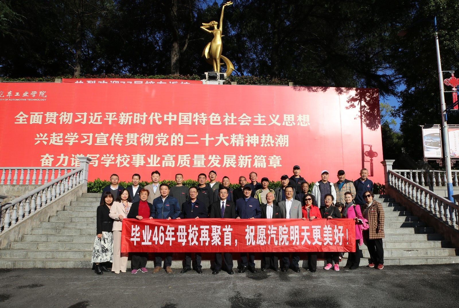 77届校友、学校原党委书记王超回顾了在学校四十年工作历程。他说,老一辈教师扮演了建校初期的拓荒者和耕耘者的角色,西山头上的两栋楼见证了当年的教育教学。大家立足企业需要开展了一系列教学探索与改革,为汽院工程教育特色的形成奠定了坚实的基础。