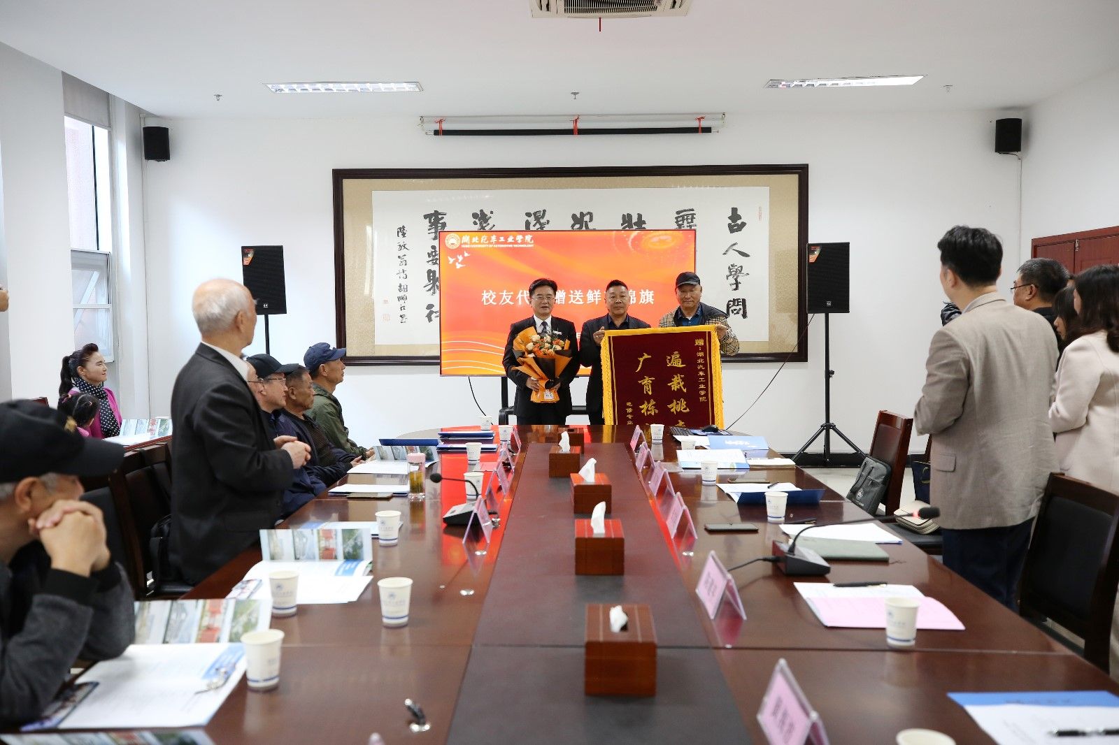 会上,校友为学校赠送“遍载桃李树,广育栋梁材”锦旗,为恩师代表邱春正、齐家兰送上鲜花,感谢母校对校友的培养和关心。校友们畅所欲言,纷纷抒发对母校的深厚情谊。