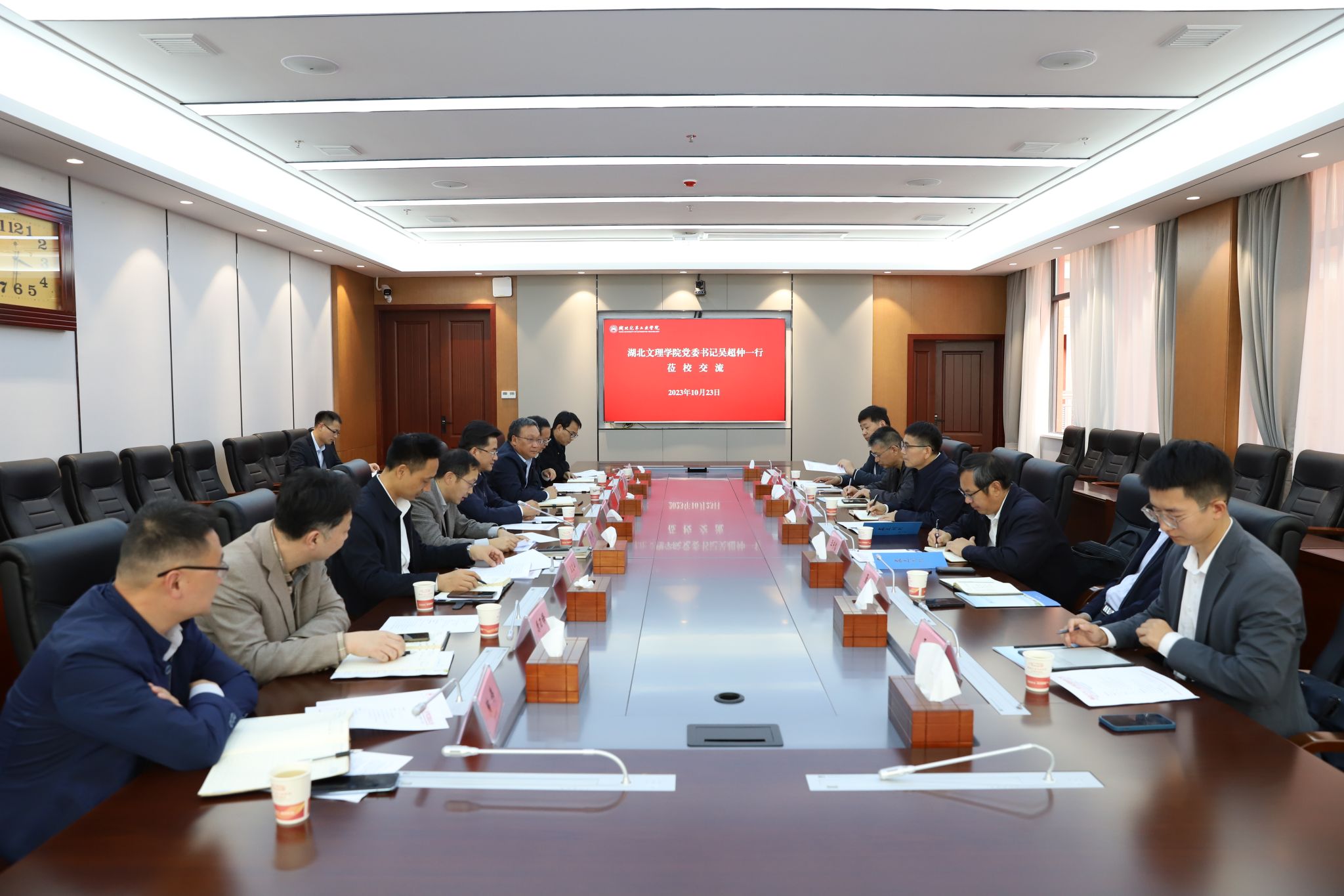 本网讯(文/图 邓玉洁)10月23日下午,湖北文理学院党委书记吴超仲一行来校调研并举行交流座谈会,beat365党委书记张文学,党委副书记李涛,党委常委、组织(统战)部部长王镇,党委常委、党办主任王文山,以及党委宣传部、教务处、发展规划处、创新创业教育学院等相关人员参加座谈会。座谈会由李涛主持。