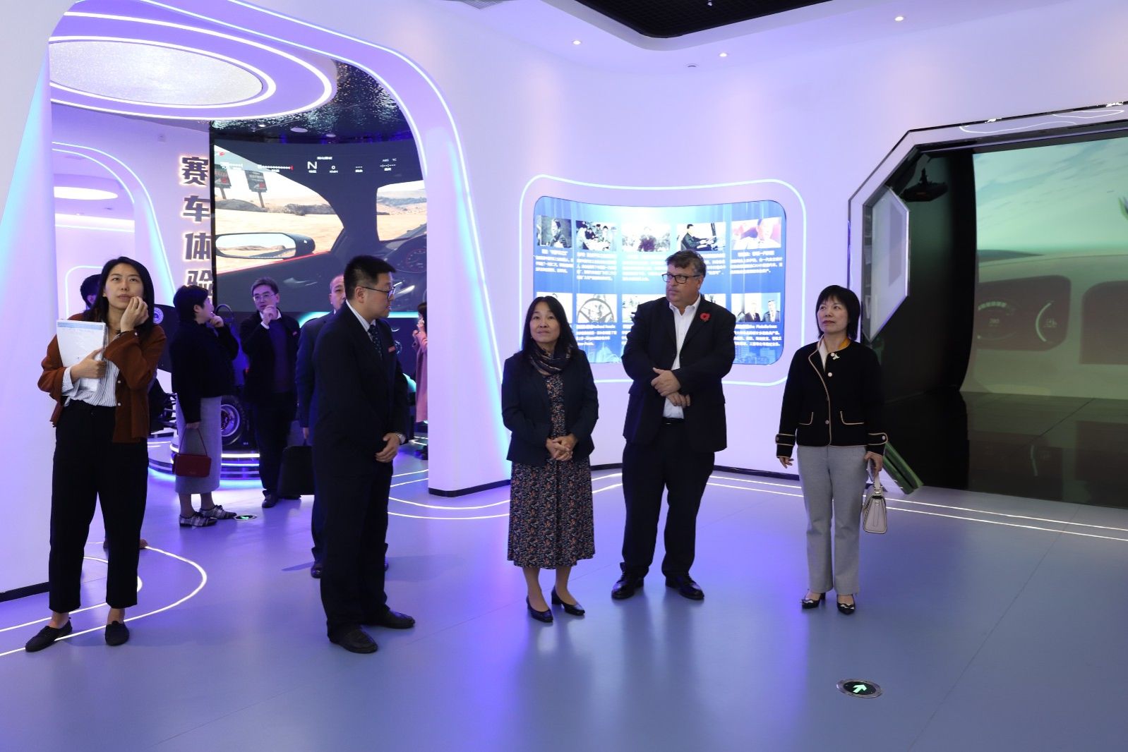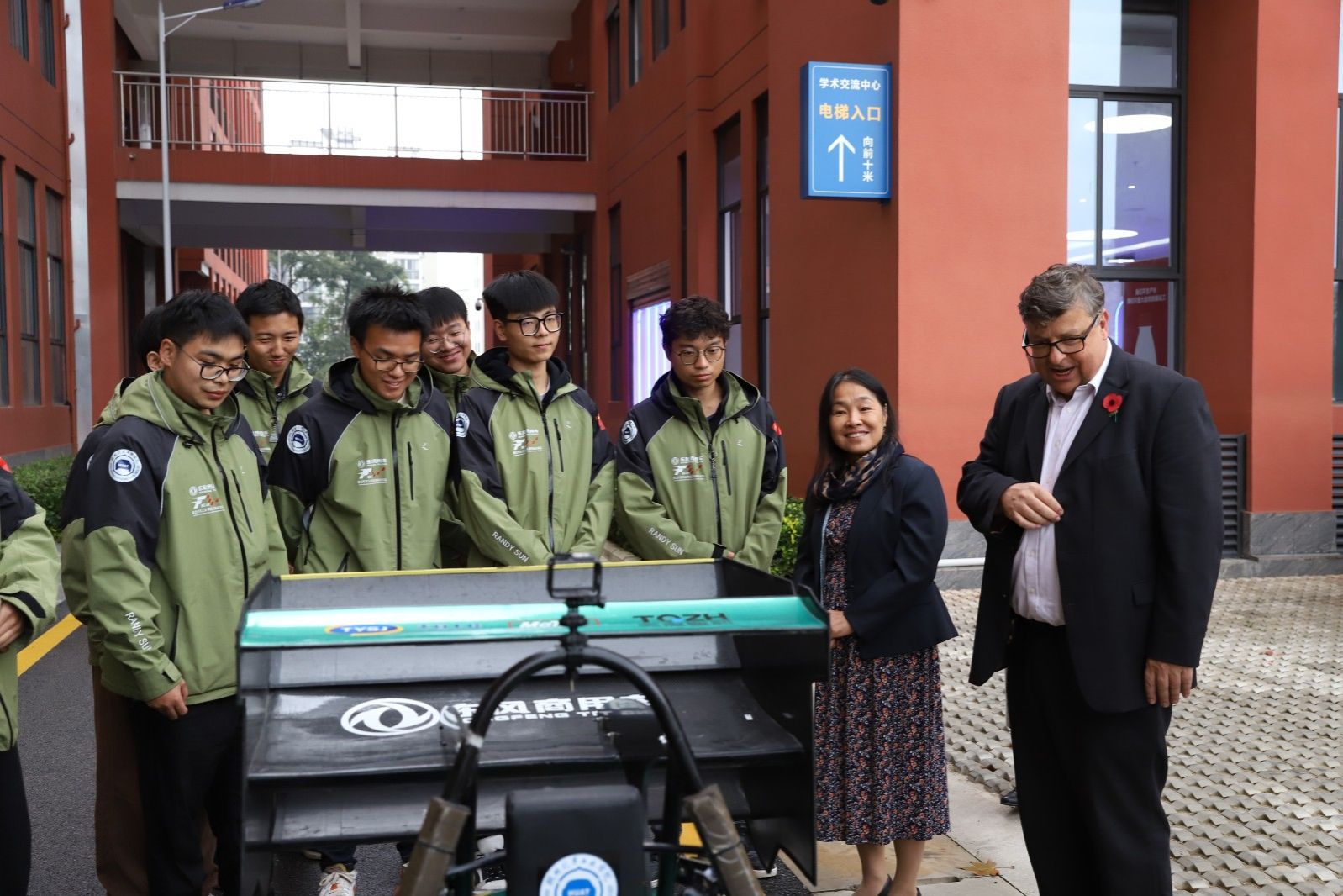 麦多明先生一行还来到beat365东风HUAT大学生方程式车队,了解了赛车的性能以及光辉战绩,饶有兴致地同车队学生用英语进行亲切交谈,勉励他们努力学习,并现场解答他们对于留学英国的问题。随后,麦多明先生一行参观了学校科技创新展示交流中心。
