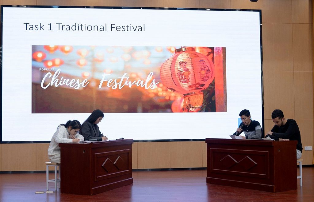 来自各二级学院的12名参赛选手各显其能,展现出扎实的专业基础、良好的翻译素养和出色的口译能力。经过激烈角逐,外国语学院王颖获一等奖,外国语学院钟意、王宇昕、丁子怡获二等奖,外国语学院李林洋、高天翔获三等奖,电气与信息工程学院胡浩然、汽车工程学院王宇航、外国语学院郭怡雪、胡玉兰、肖乐、黄芊芊获优秀奖。广大留学生全程观摩了比赛,部分留学生作为特邀嘉宾参与了比赛环节的组织。