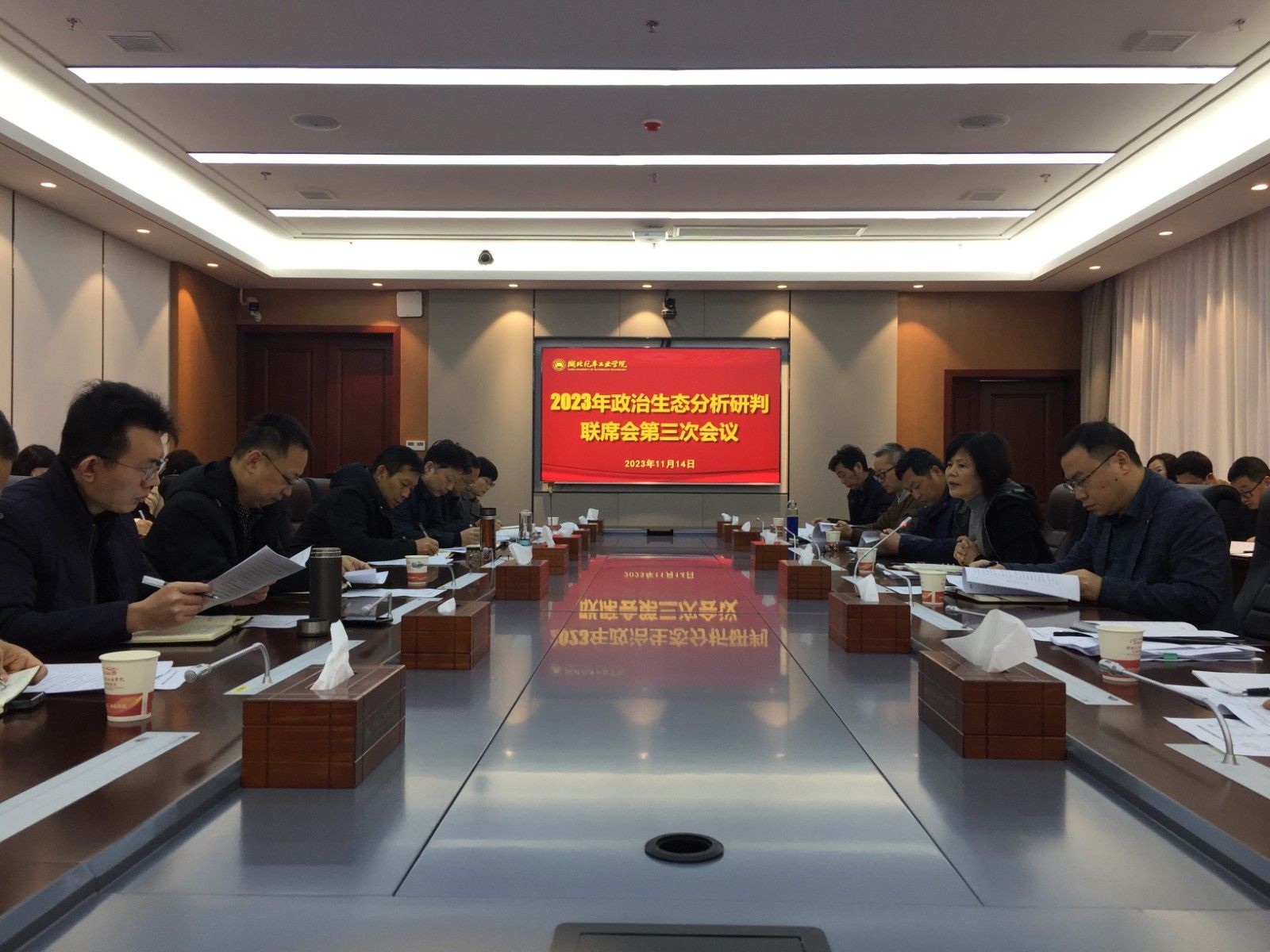 会议传达学习了省委政治生态分析研判联席会2023年度推进会暨培训会精神,审议并通过了学校2023年政治生态分析研判查找问题清单。