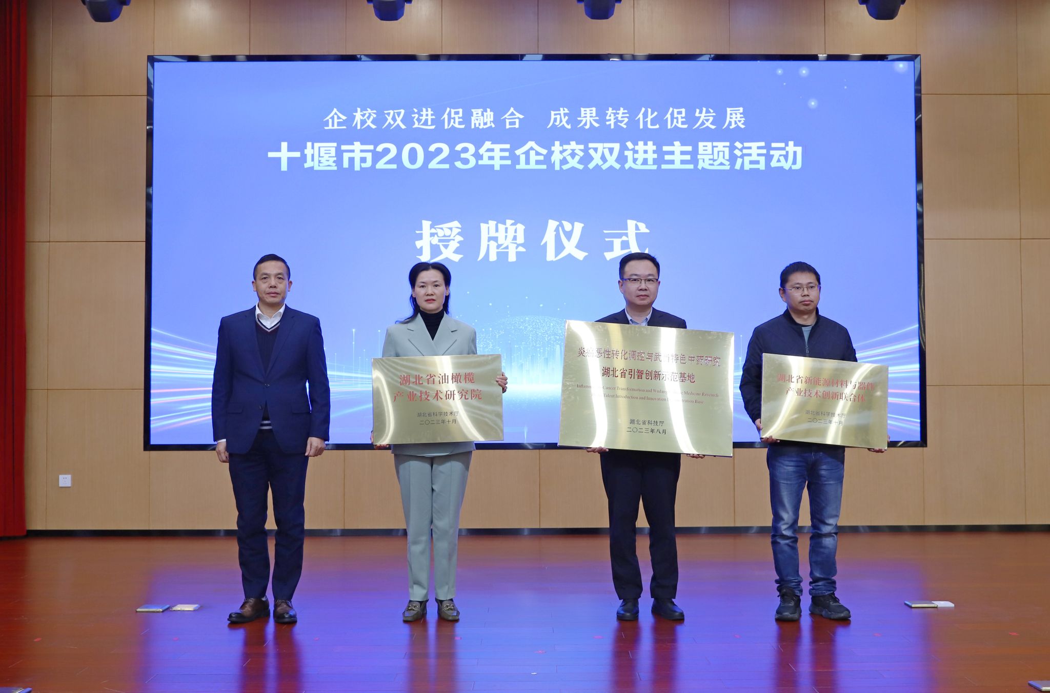 十堰市政府副市长罗耀华,湖北省科技厅成果转化和区域创新处副处长余翔,湖北技术交易所市场总监卢敏,十堰市科技局局长刘军以及校主要领导出席授牌签约仪式现场。十堰市直单位、县市区科技管理部门、金融机构代表、省内部分高校院所专家、高新企业代表等共350余人参加活动。十堰市人民政府副秘书长孙成林主持活动。