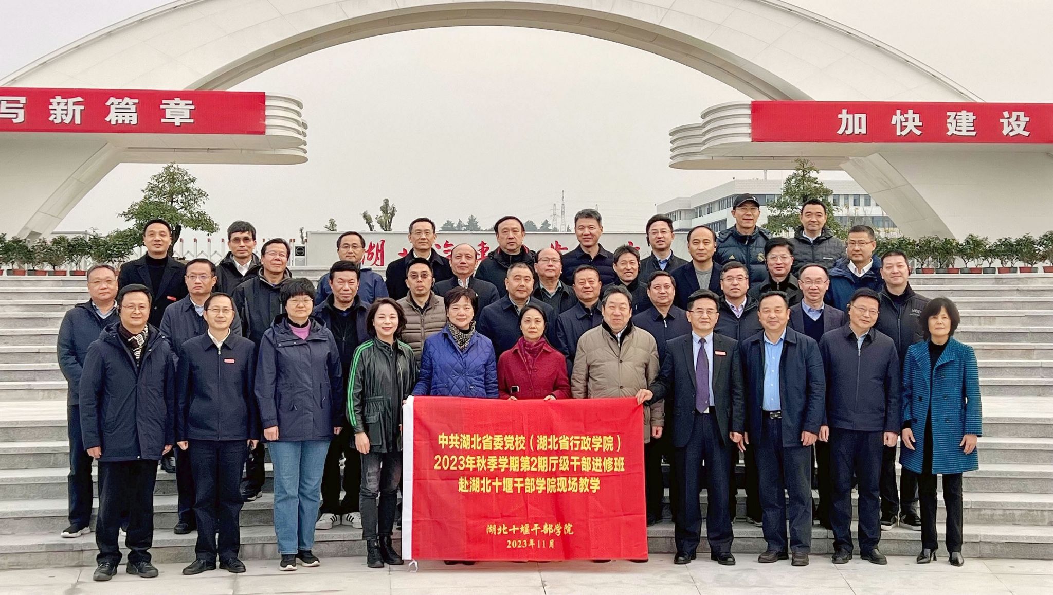 本网讯(文/图 广娟)11月29日下午,省委党校厅级干部秋季第二期进修班33名学员莅临学校考察调研,重点考察了学校北区(扩建校区)、校史馆和科技创新展示中心。校党委书记张文学、副书记李涛,纪委书记林雪荣,党委常委、组织部长王镇,党委常委、党政办主任王文山陪同调研。