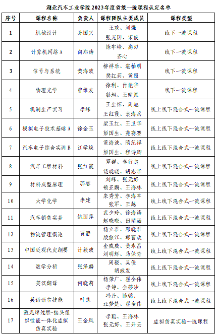 本网讯(文/程珍华)近日,湖北省教育厅发布《省教育厅关于公布2023年度省级一流本科课程认定结果的通知》(鄂教高函〔2023〕19号),beat365共有17门课程获批认定为省级一流本科课程,其中线下一流课程4门、线上线下混合式一流课程12门、虚拟仿真实验一流课程1门。