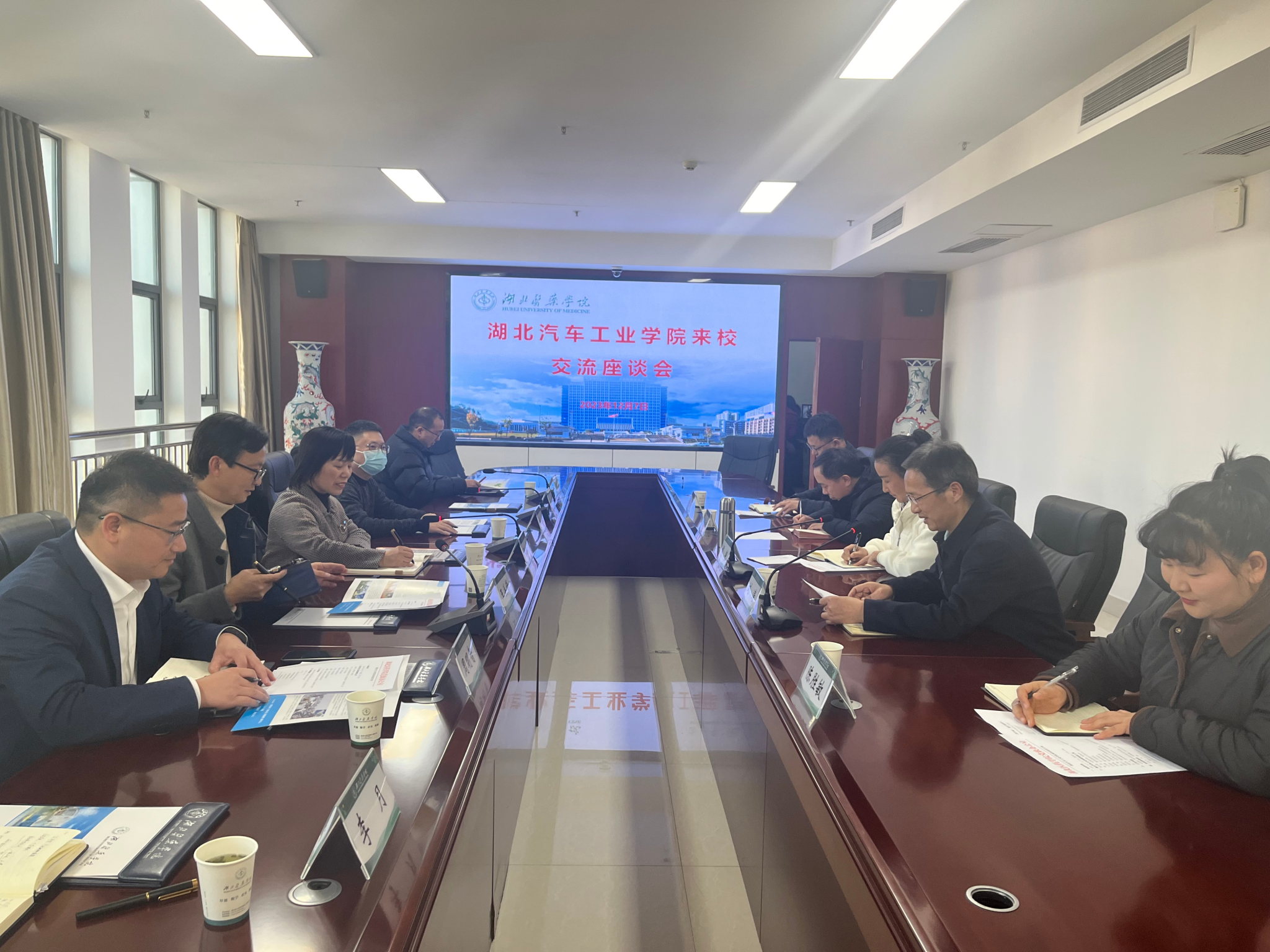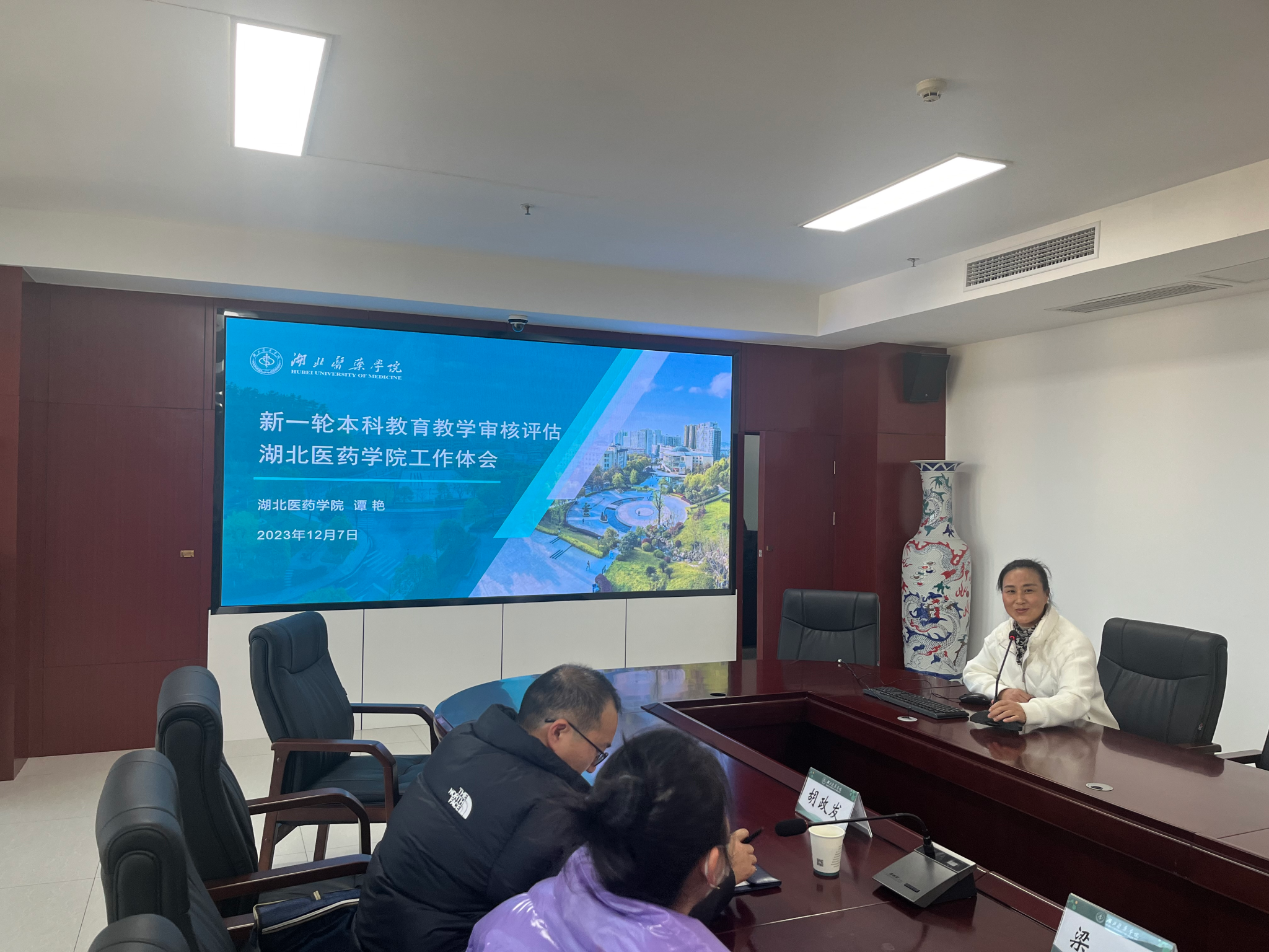 会上,谭艳对张红霞一行表示热烈欢迎,希望加强同城校际交流,促进共同发展进步。谭艳围绕新一轮审核评估的湖北特征、湖医做法以及工作体会三方面,详细介绍了湖北医药学院接受教育部本科教育教学审核评估自评自建、线上评估、入校评估相关情况。与会人员围绕工作机制、自评报告撰写及支撑材料准备、专家考察重难点等方面进行了深入探讨和交流。