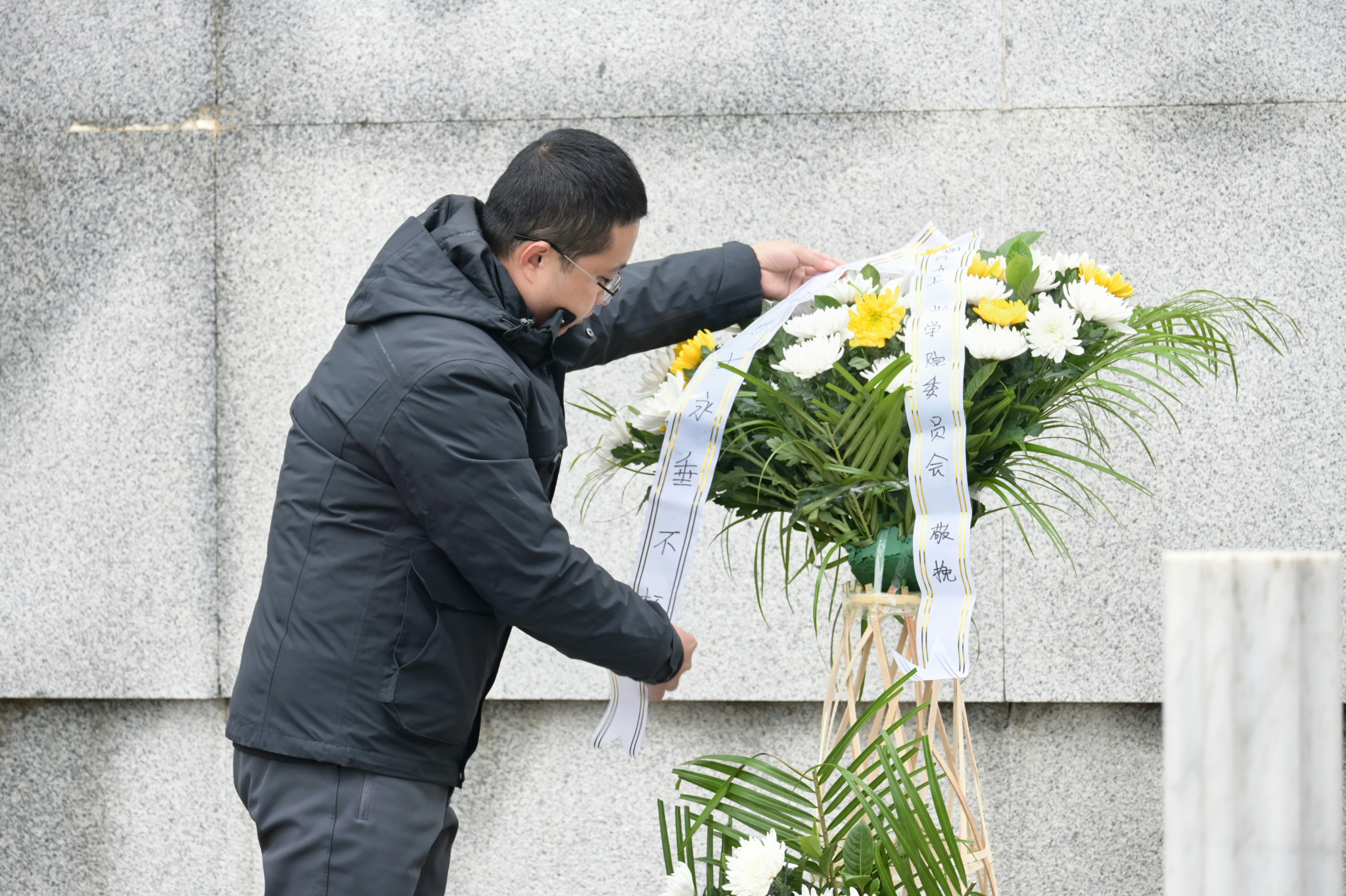 默哀毕,全体师生为革命烈士献花,整理挽联,缅怀为中国抗日战争献出生命的革命先烈和民族英雄。同时参观了郧阳烈士纪念馆。