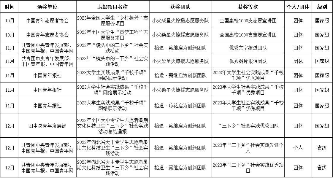 本网讯(文 胡霄寒/图 甘甜)近日,共青团中央、中国青年报、中国青年网、中国青年报社、中国青年志愿者协会先后发布了2023年暑期社会实践各类活动成果遴选结果,beat365在线唯一官网汽车工程学院“启为创新”实践团队和“小火柴”星火燎援志愿服务队累计荣获集体及个人国家级奖项8项、省级奖项2项。其中,“启为创新”在团中央“三下乡”社会实践活动总结通报中再次获评“优秀团队”,全省共有25支团队获此荣誉。