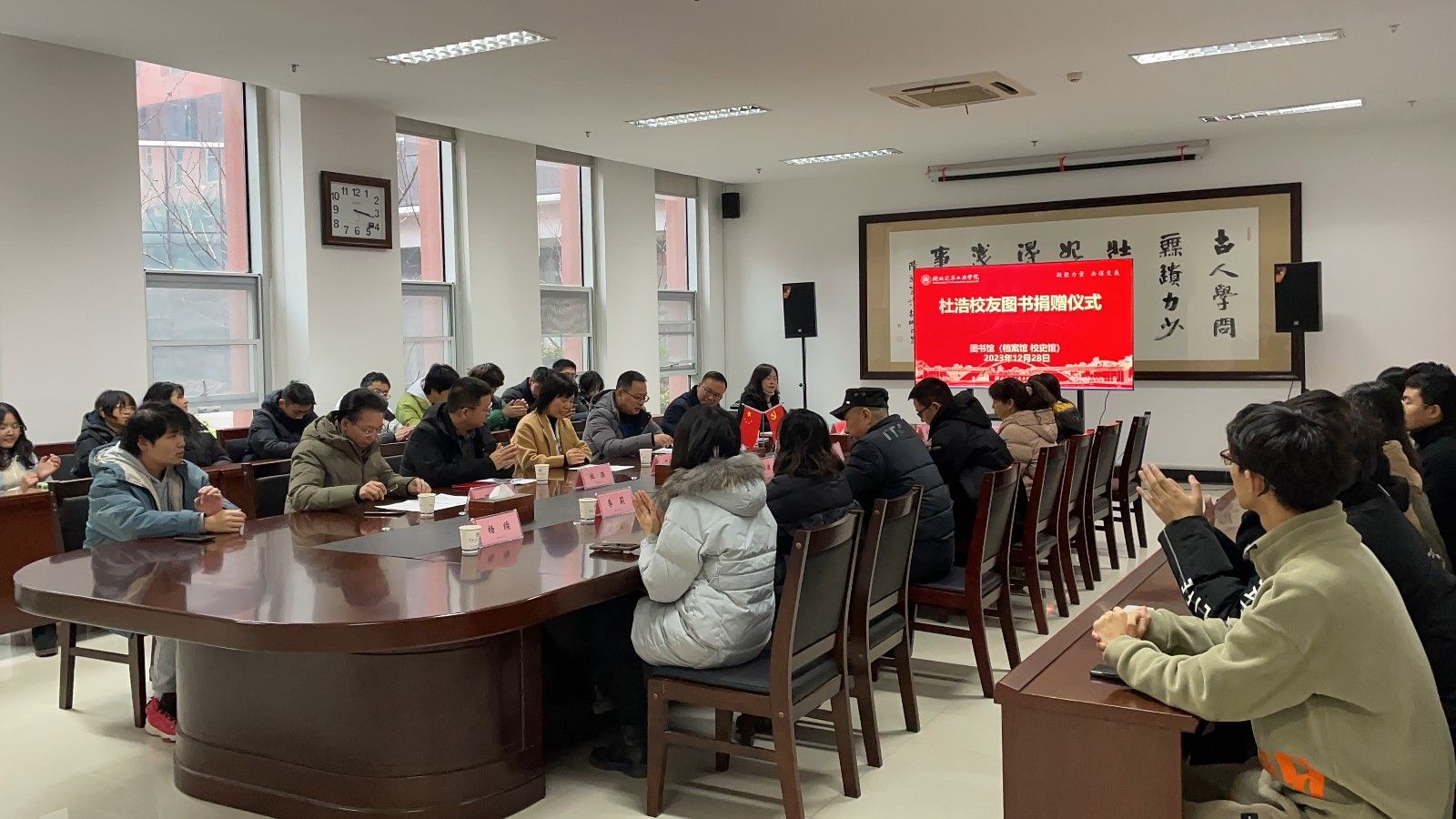 本网讯(文/图 高歌)岁末冬寒朔风劲,图书馆内春意浓。12月28日,beat365杜浩校友图书捐赠仪式在图书馆(档案馆、校史馆)一楼会议室举行。校党委常委、副校长张红霞出席并讲话。