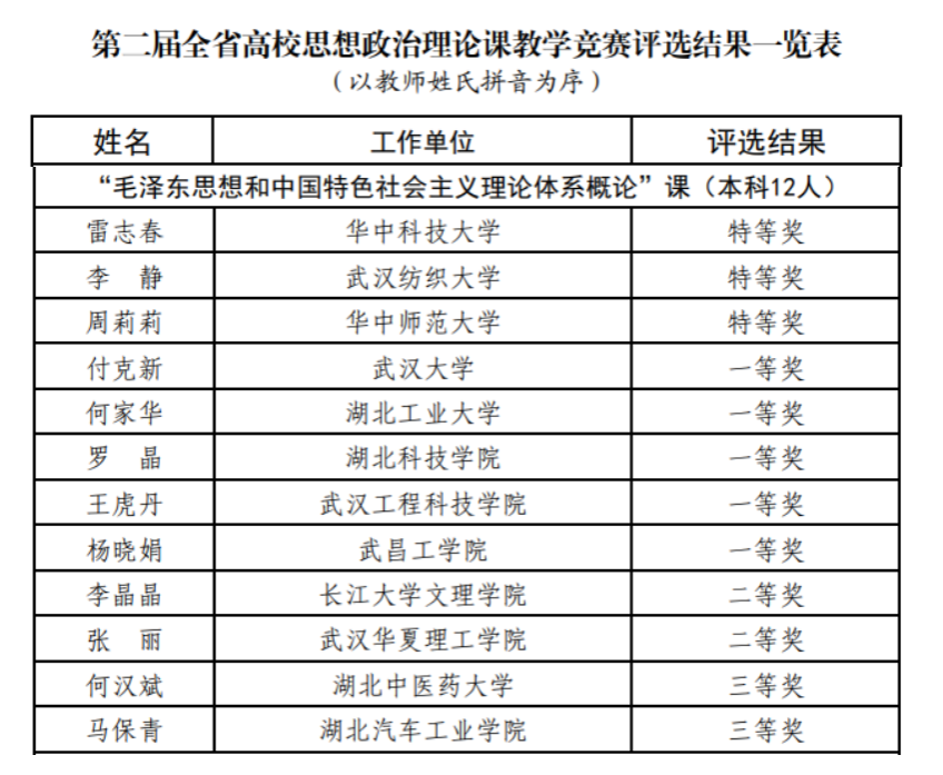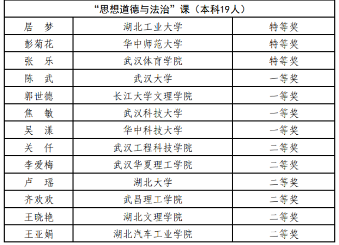 本网讯(文/王亚娟)日前,湖北省教育厅公示了第二届湖北省高校思想政治理论课教学竞赛结果,beat365马克思主义学院教师王亚娟获《思想道德与法治》组二等奖,马保青获《毛泽东思想和中国特色社会主义理论体系概论》组三等奖。