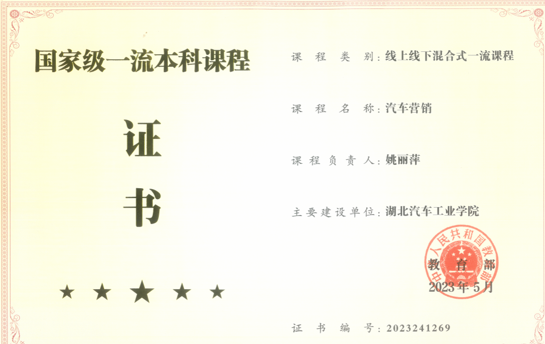 《汽车营销》获批国一流课程,《汽车销售实务》、《物流管理概论》获批为省级一流课程。