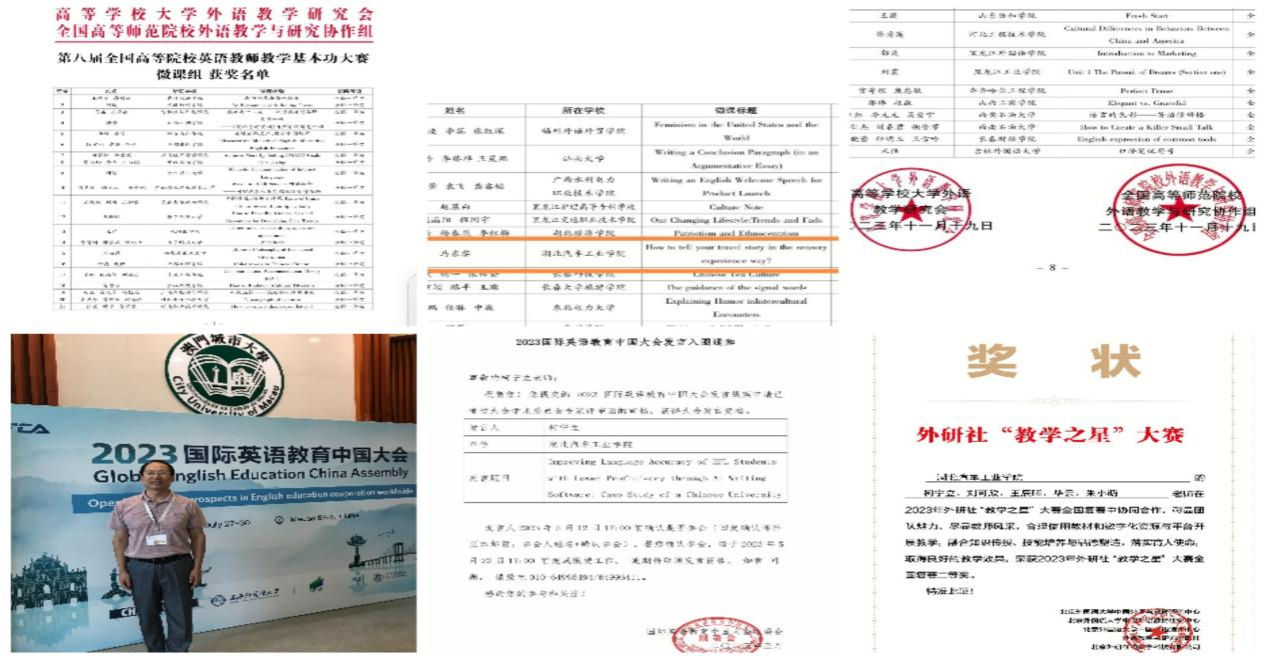 一、党建引领“双带头人”成绩获新提升。教工一支部书记柯宁立受邀参加2023年国际英语教学中国大会(澳门),并作主题发言,还获外研社“教学之星”大赛全国复赛二等奖;教工二支部书记马东黎获高校英语教师教学基本功大赛全国三等奖;2023年,学生党支部获评学校先进基层党组织。学生党支部书记魏院珍获评校级优秀辅导员,获批教育厅哲学社会科学研究专项项目。