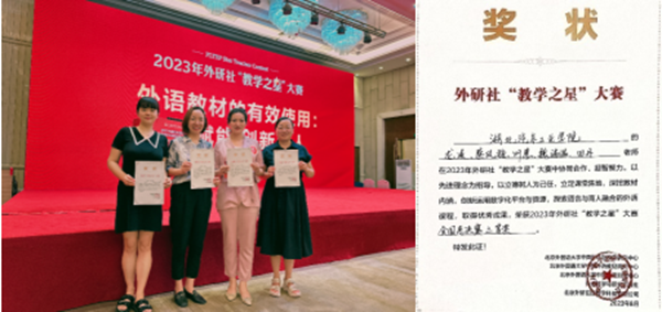 九、学生竞赛成绩有突破。获教育部A类竞赛“第六届“外教社杯”全国高校学生跨文化能力大赛”国奖1项,参赛作品获《湖北日报》《人民网》等媒体报道;获第三十五届韩素音国际翻译大赛全国三等奖1项、优秀奖2项,“理解当代中国”全国大学生外语能力大赛多项奖励。