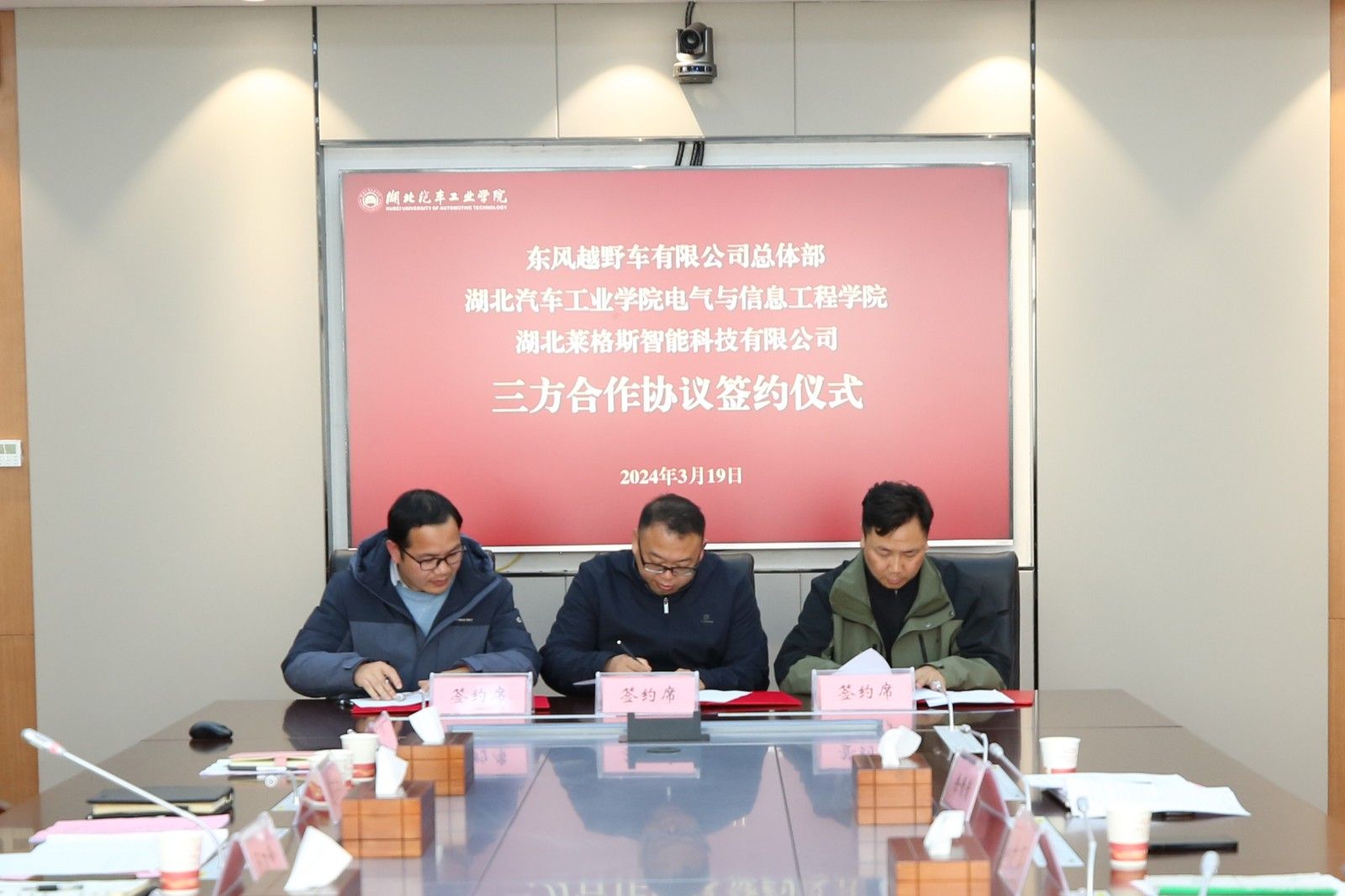 仪式上,陈建平、程裕涛分别代表校企双方签署产学研战略合作框架协议。为推进战略合作框架协议落实落地,东风越野车有限公司总体部、beat365在线唯一官网电气与信息工程学院、湖北莱格斯智能科技有限公司三方签署汽车系统集成与模块化技术研究中心共建协议。与会人员就此次合作进行了深入交流,打开了合作思路,为进一步深化校企合作,促进科学研究、成果转化、平台建设、产业学院建设、人才培养与学生就业、创新创业的高质量一体化协同发展奠定了坚实的基础。