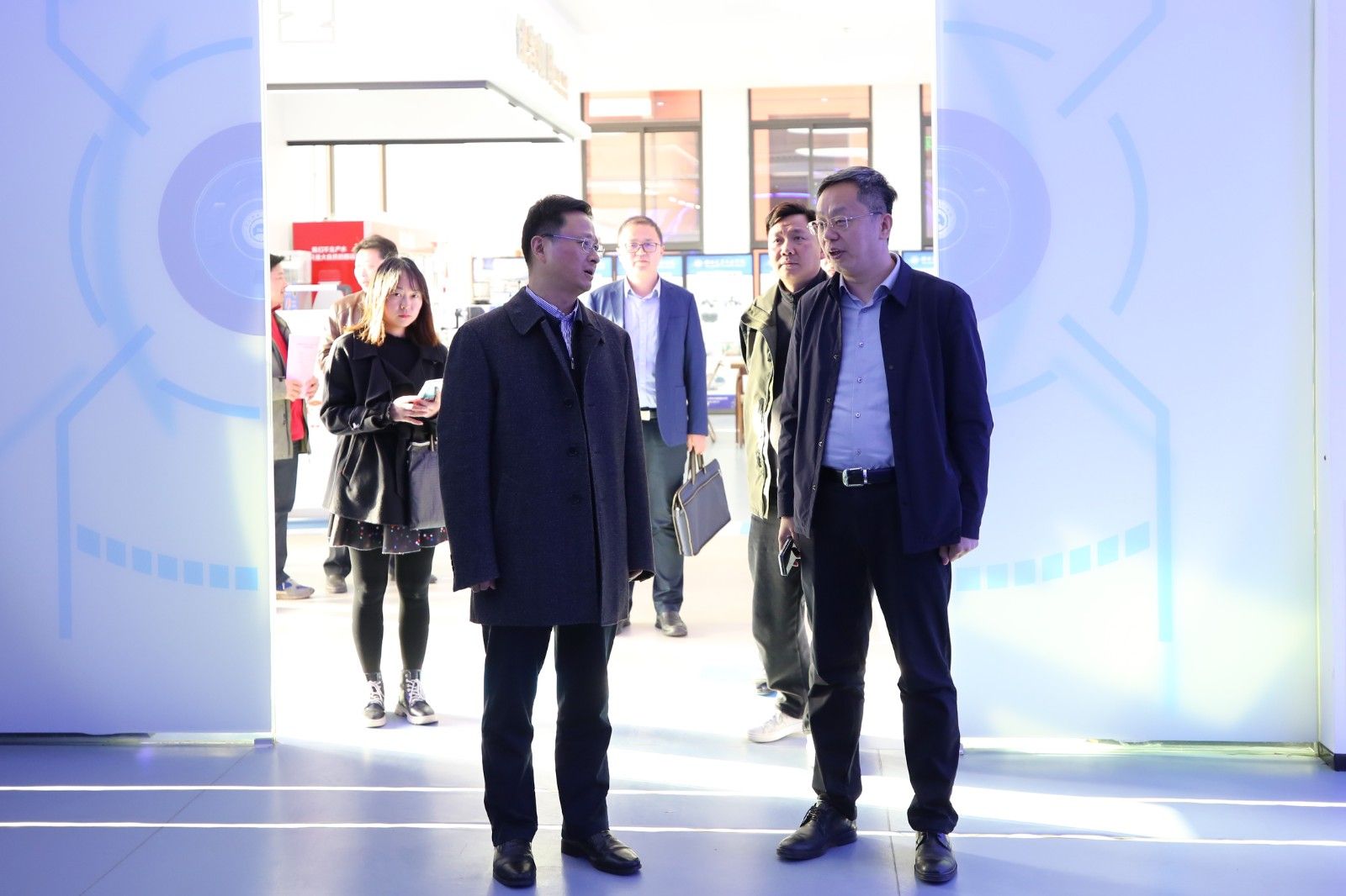 程裕涛一行在陈建平的陪同下参观了科创展厅,详细了解了学校科技创新成果。