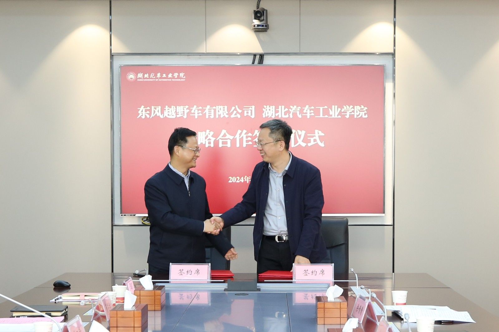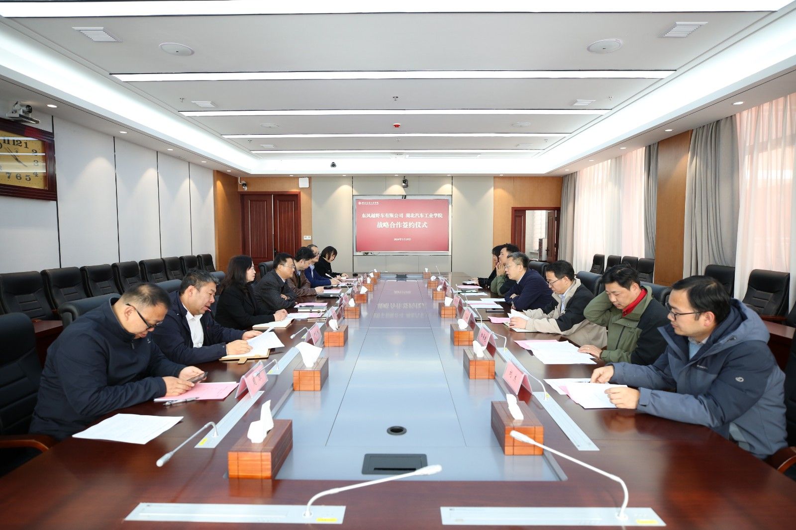 本网讯(文 徐跃廷/图 李一凡)3月19日下午,东风越野车有限公司党委副书记兼纪委书记程裕涛、人力资源部部长刘风云、总体部总师徐勇、总体部主任阳易乾、人力资源部人才管理主任余倩倩一行5人莅临beat365,与学校在产教大楼三楼多功能会议室举行战略合作签约仪式。校党委副书记陈建平出席签约仪式并致辞,合作发展处处长(服务东风办公室)原刃锋主持仪式。