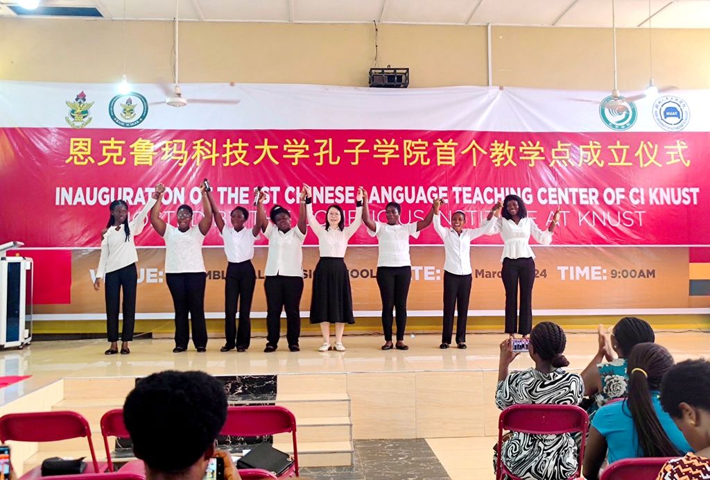 阿散蒂省省长、省教育厅官员、库玛西市教育局局长、恩克鲁玛科技大学人文学院院长、国际事务办公室主任、孔子学院中外方正副院长、基础学校教师和学生代表以及孔子学院全体人员参加成立仪式。新华社、华文电视台及加纳当地媒体对成立仪式进行了报道。(审稿 苏子波)