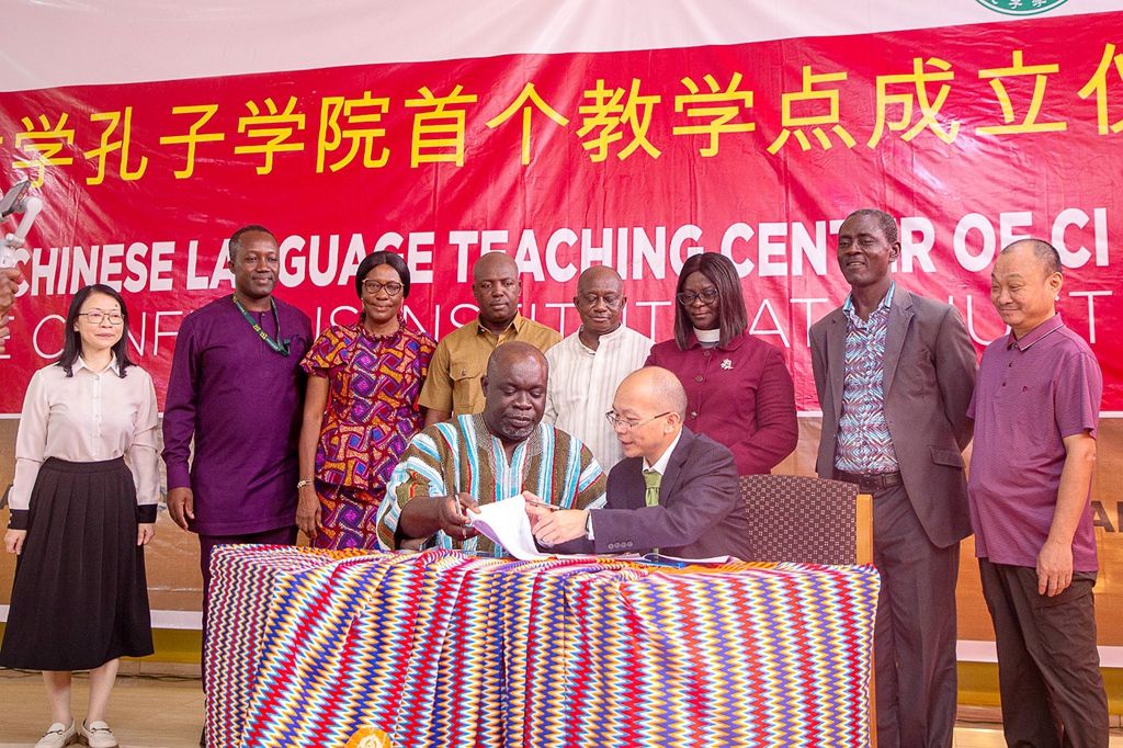 加纳阿散蒂省省长西蒙·奥塞·门萨先生应邀出席并致辞。他指出,中文教学点的成立,必将助力青少年收获更加美好的未来。他表示,孔子学院及其教学点必将促进两校之间、地区之间乃至两国之间的交流与合作,阿散蒂省政府的大门“将永远为孔子学院敞开”。