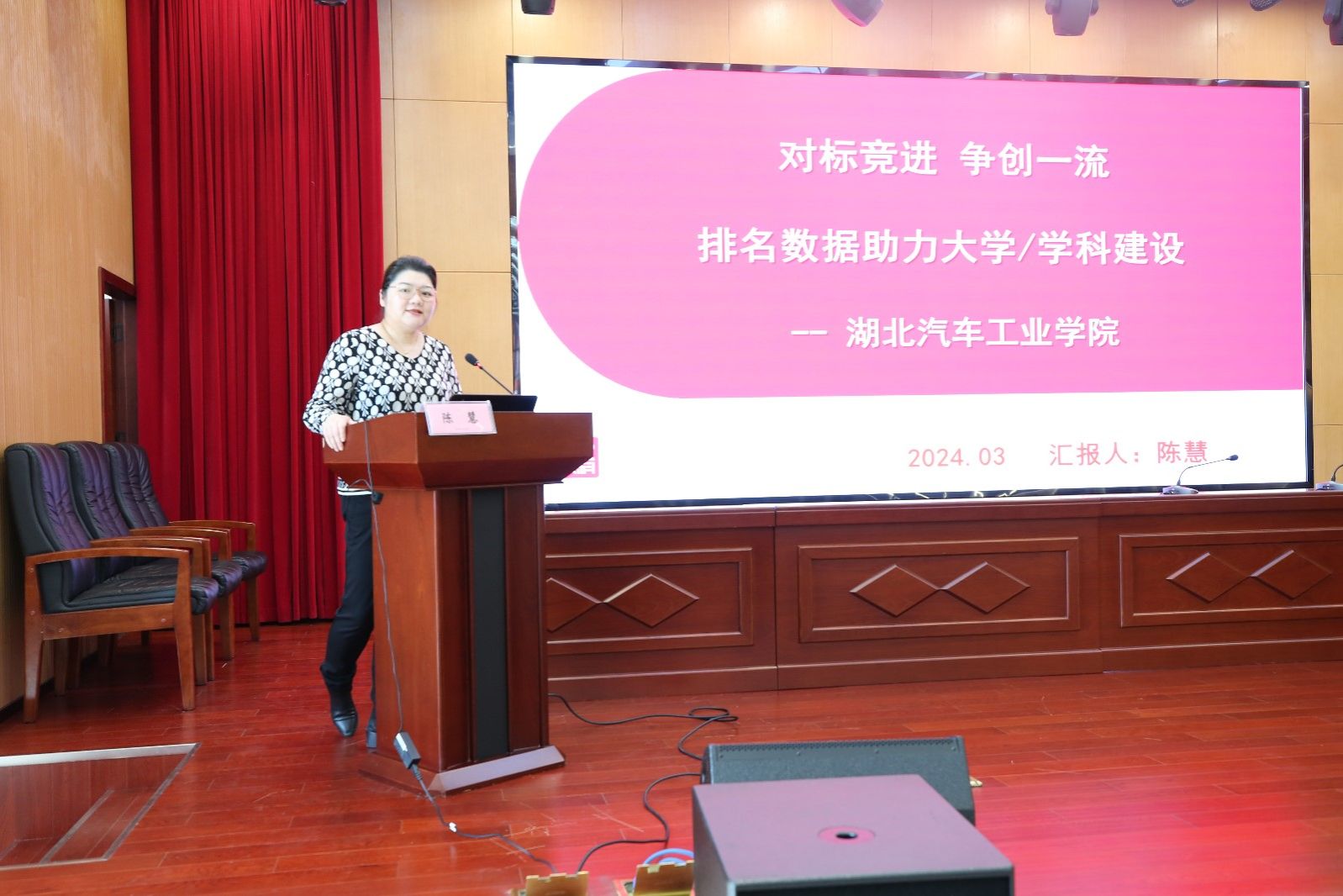 本网讯(文 肖玲莉/图 李一凡)3月25日下午,学校在产教大楼四楼报告厅举办软科中国排名指标解读报告会,特邀软科教育咨询项目专家陈慧博士作题为《对标竞进 争创一流 排名数据助力大学/学科建设》的专题报告。报告会由副校长张友兵主持。全体在家校领导、全体中层干部、高级职称教师代表共计300余人聆听了报告。