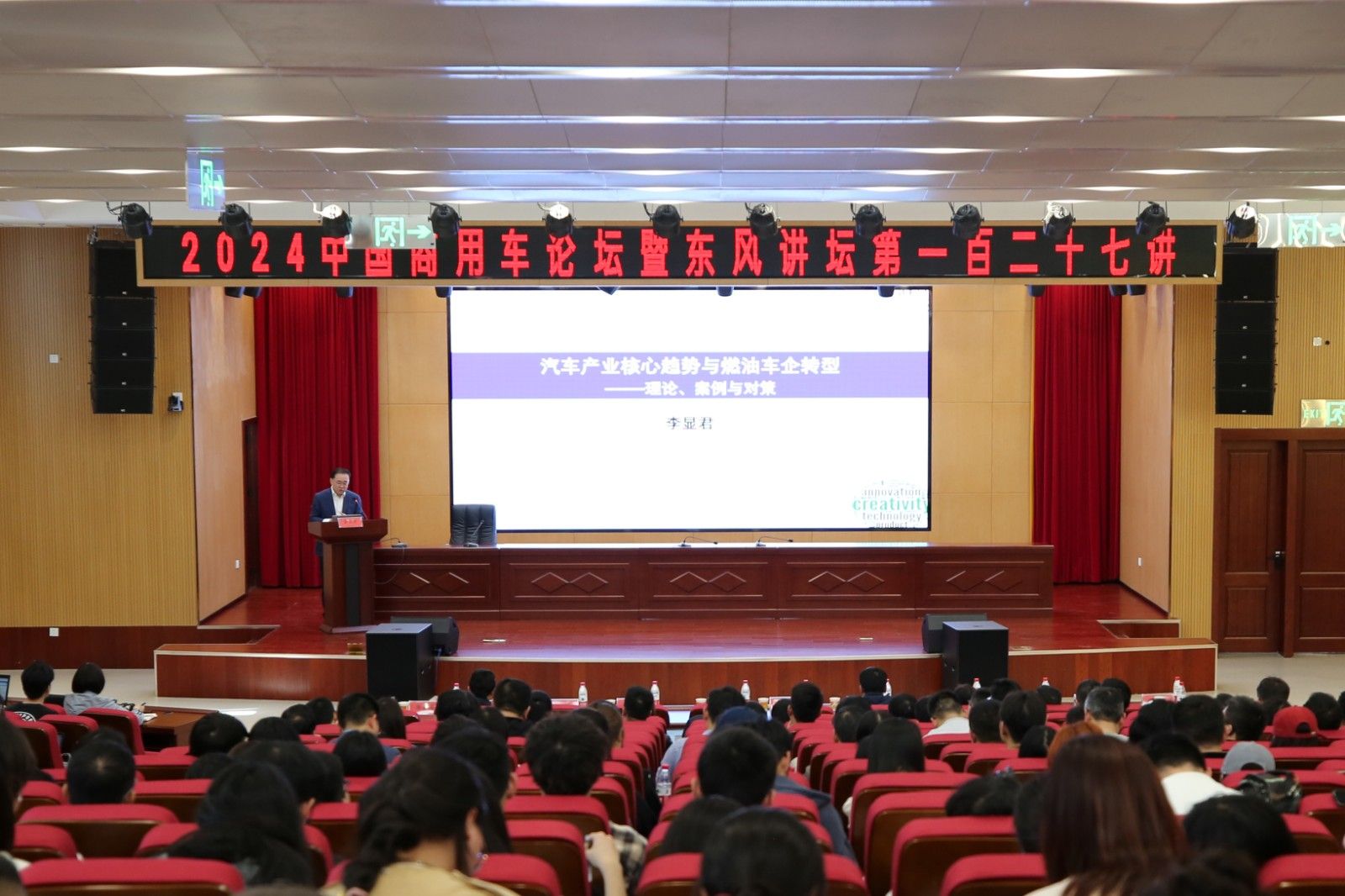 本网讯(文/图 陈方明、黄慧、肖俊涛、李一凡)3月29日下午,清华大学车辆与运载学院李显君教授应邀做客2024年中国商用车论坛暨“东风讲坛”第一百二十七讲,在学校产教大楼4楼报告厅为东风商用车有限公司、东风设备制造有限公司、东实汽车科技集团股份有限公司、赛力斯汽车(湖北)有限公司等20余家企业代表70余人以及学校师生300余人,做了题为《汽车产业核心趋势与燃油车企转型:理论、案例与对策》的专题学术报告。