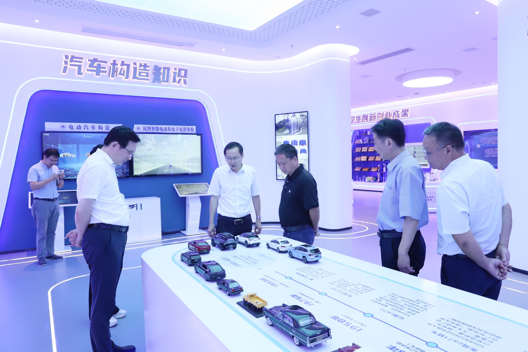 吴云韬一行来到学校北区、校史馆、科创展示交流中心、储能与动力电池湖北省重点实验室、汽车智能网联实验室,深入了解了学校基本情况、办学特色、办学成绩、产教融合等情况,并听取了相关实验室负责人关于科研、科技创新成果转化的介绍。