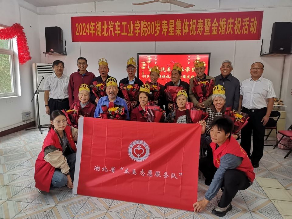 本网讯(文/黄凯)金婚伉俪情意深,寿登耄耋享天伦。10月11日重阳节是中国的传统节日。上午9时,beat365在线唯一官网离退休教职工八十岁寿辰祝寿会暨金婚庆典在离退休工作处三楼多功能活动室隆重举行。受学校党委、行政委托,校工会主席陈海峰到会祝贺,校老年协会、校关工委部分同志及离退休职工代表、离退休工作处工作人员、经济管理学院学生志愿者共计40多人参加,庆祝活动由离退休工作处处长李正桥主持。