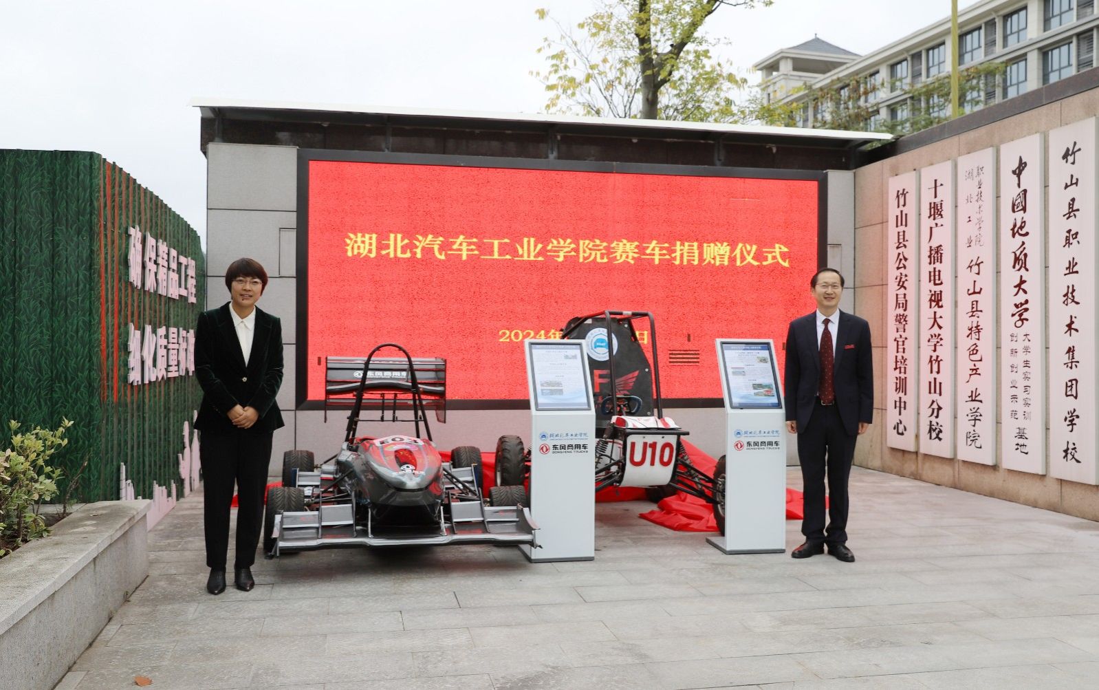 仪式上,张文学、王晓、汪正义、王宇星共同为beat365在线唯一官网竹山产学研基地揭牌,王晓宣读《关于成立beat365在线唯一官网竹山县产学研基地的决定》,李涛为县一中捐赠了方程式赛车和巴哈越野车。