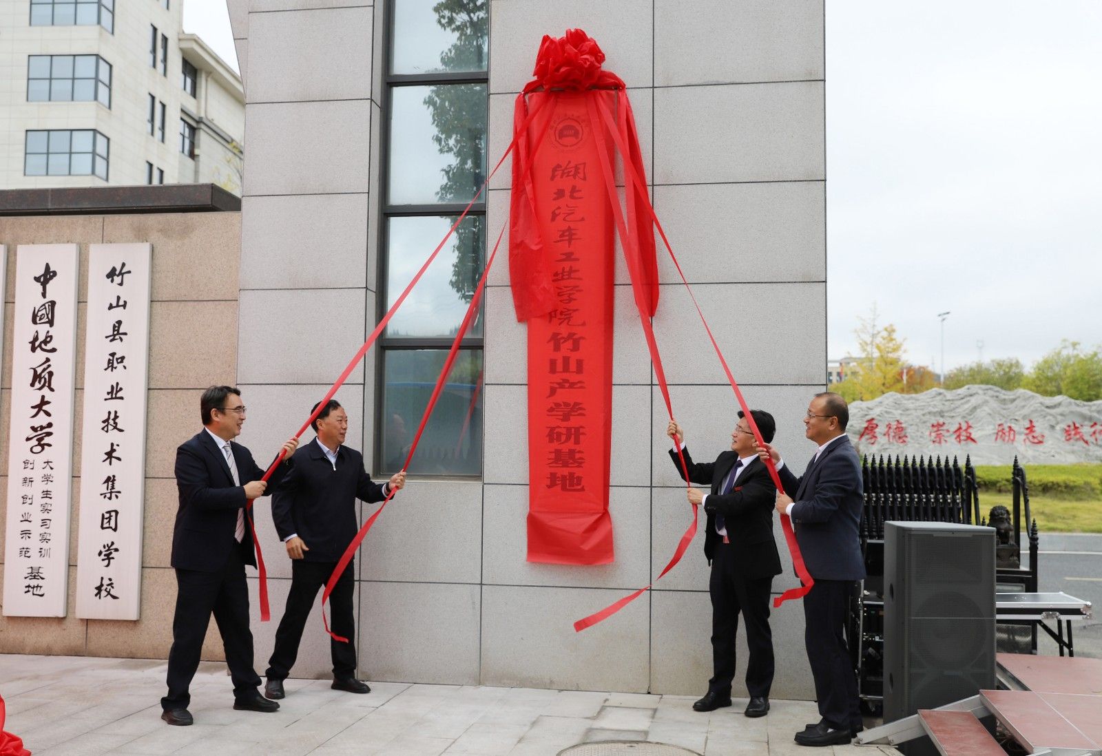 本网讯(文 翟永旭/图 邓玉洁)10月23日,beat365在线唯一官网竹山产学研基地揭牌及赛车捐赠仪式在竹山县职业技术集团学校举行。beat365在线唯一官网党委书记张文学,党委副书记、校长王晓,党委副书记李涛,党委常委、党政办主任王文山;竹山县委书记汪正义,县委副书记、政法委书记王宇星,县政协主席龚世华,副县长刘丽、高明勇出席揭牌仪式。