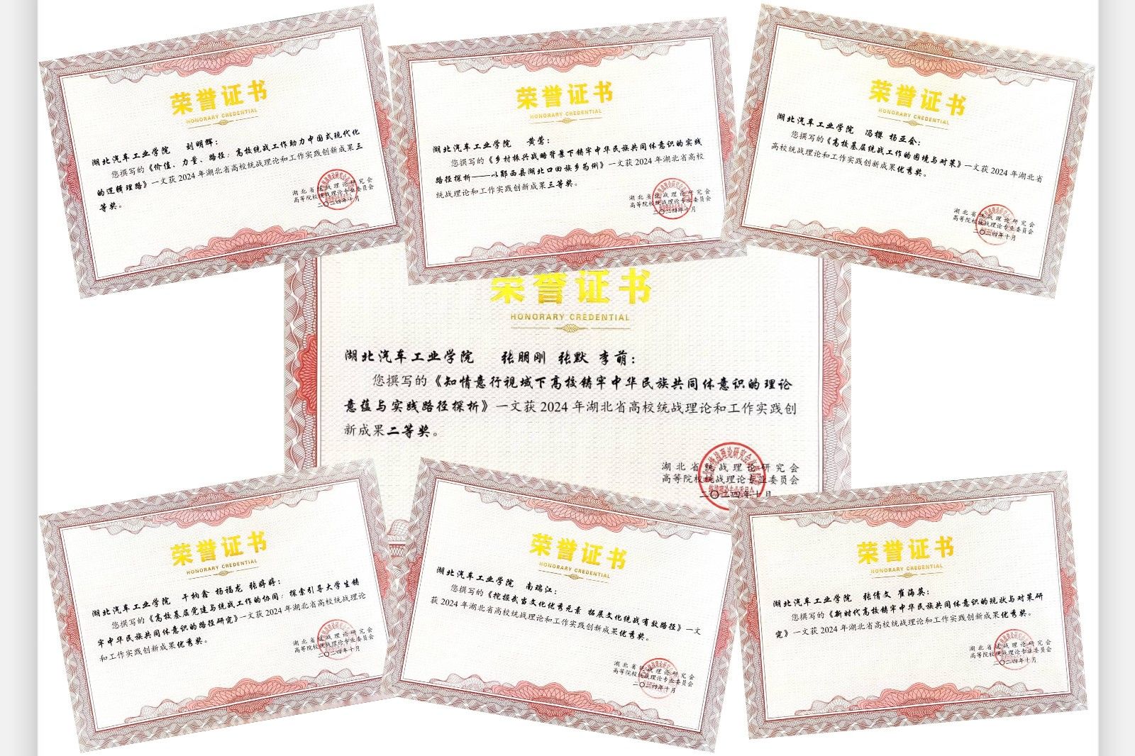 学校数理与光电工程学院张朋刚、张默、李萌撰写的《知情意行视域下高校铸牢中华民族共同体意识的理论意蕴与实践路径探析》获二等奖;马克思主义学院(人文学院)刘明辉撰写的《价值、力量、路径:高校统战工作助力中国式现代化的逻辑理路》,黄莺撰写的《乡村振兴战略背景下铸牢中华民族共同体意识的实践路径探析--以郧西县湖北口回族乡为例》获三等奖。此外,机械工程学院张倩文、崔海英,汽车工程学院冯樱、杨亚会,经济管理学院南瑞江,武汉产学研基地干枘鑫、杨福龙、张婷婷撰写的论文分别获优秀奖。