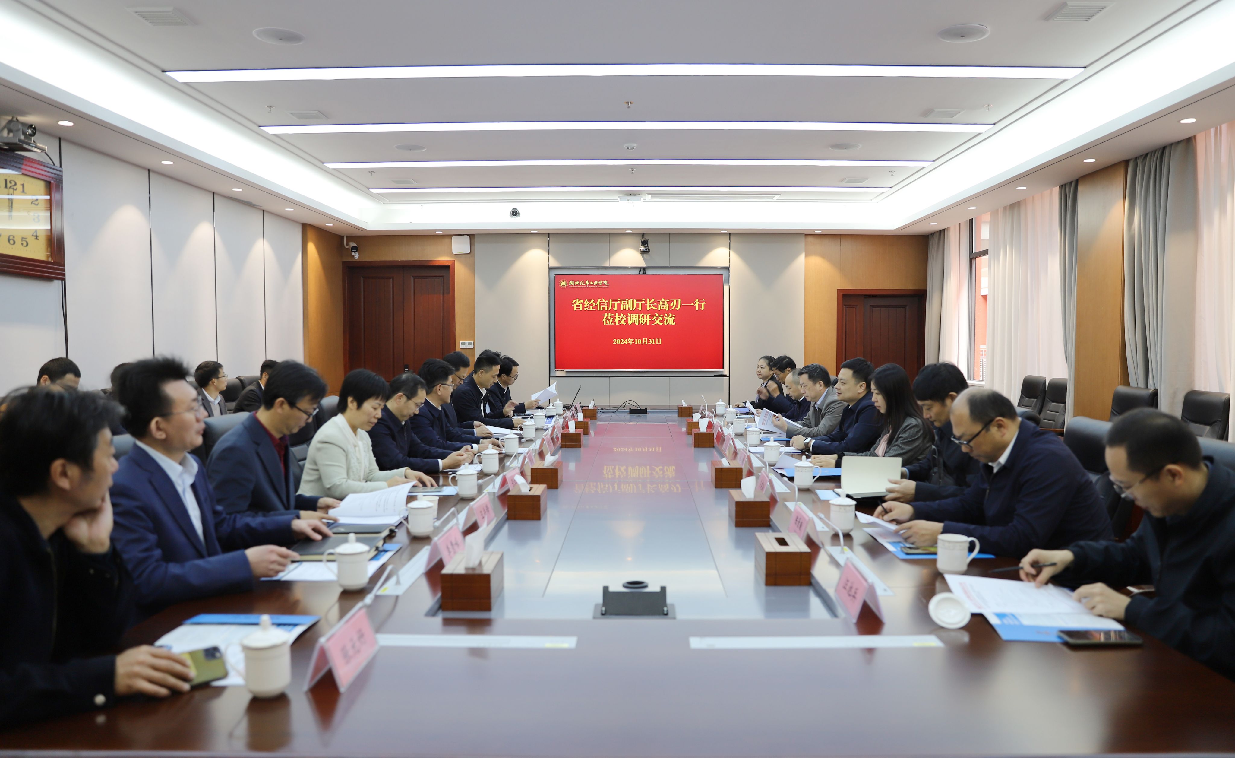 本网讯(文/图 邓玉洁)10月31日上午,湖北省经信厅党组成员、副厅长高刃一行来校调研,beat365党委书记张文学,党委副书记李涛,党委副书记、纪委书记、监察专员陈建平,党委常委、副校长张红霞,党委常委、党政办公室主任王文山热情接待。