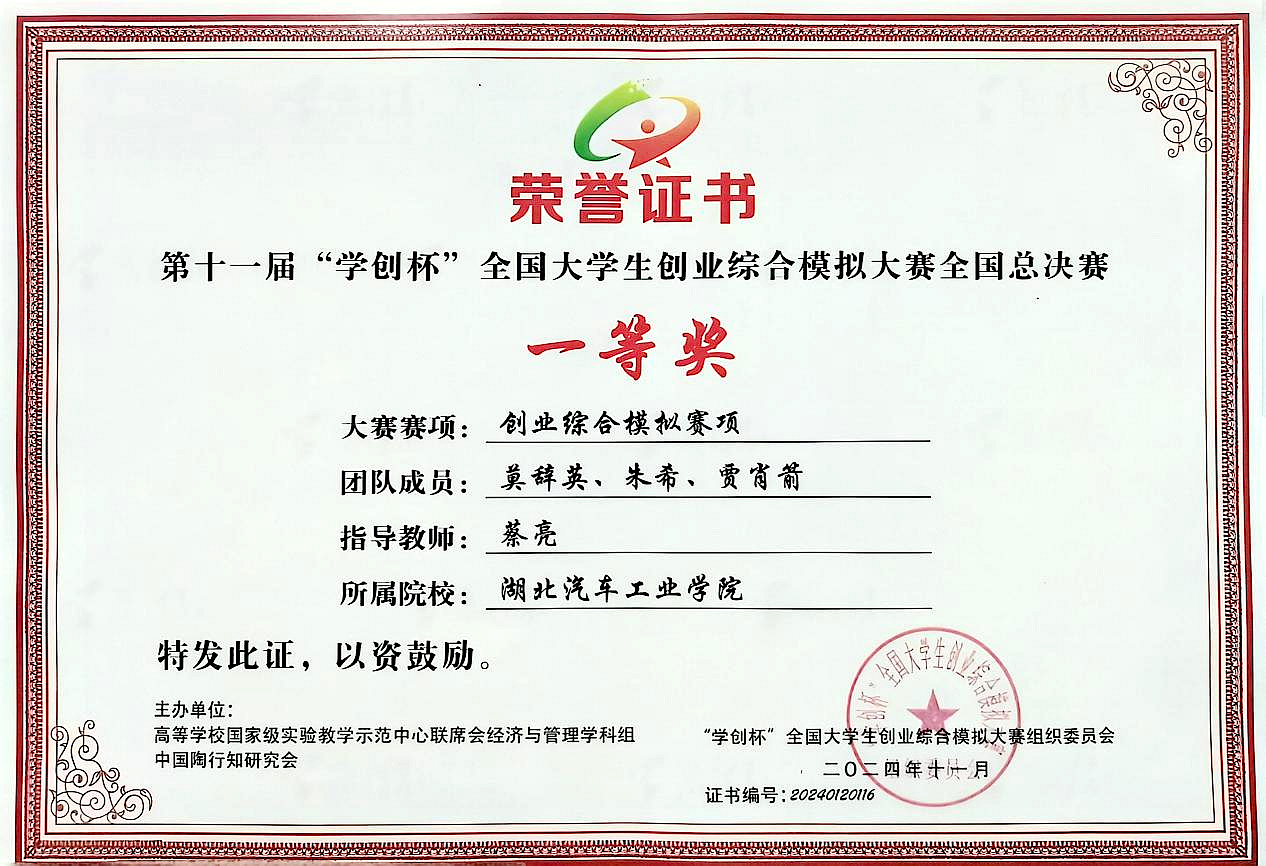 据悉,自该赛事开赛以来,经济管理学院师生积极响应,共有102支团队,306名学生参与比赛。在今年6月初举办的第十届“学创杯”全国大学生创新创业综合模拟大赛湖北省决赛中,beat365学子还喜获湖北省一等奖2项、二等奖4项。