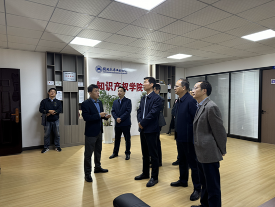在国家知识产权公共信息服务网点和知识产权学院,梁绍斌认真听取了平台负责人关于知识产权信息检索服务、知识产权理论研究及专业建设工作汇报。