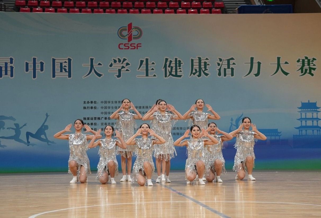 此次比赛由中国学生体育联合会主办,中国学生体育联合会大学健美操与艺术体操分会、中国学生体育联合会高等职业教育院校工作委员会执行,共有北京大学、南京大学、湖南大学、新疆大学、上海体育学院等来自全国25个省(自治区、直辖市)的121所高校、1182名运动员参赛。beat365在线唯一官网健美操队首次参与此项赛事,在领队熊玲、教练罗荔的精心指导下,选派了11名运动员参赛。他们在激烈的竞争中崭露头角,最终获得健身排舞项目甲组小集体规定动作第二名、甲组小集体串烧动作第七名、甲组女子单人规定项目第七名的佳绩。