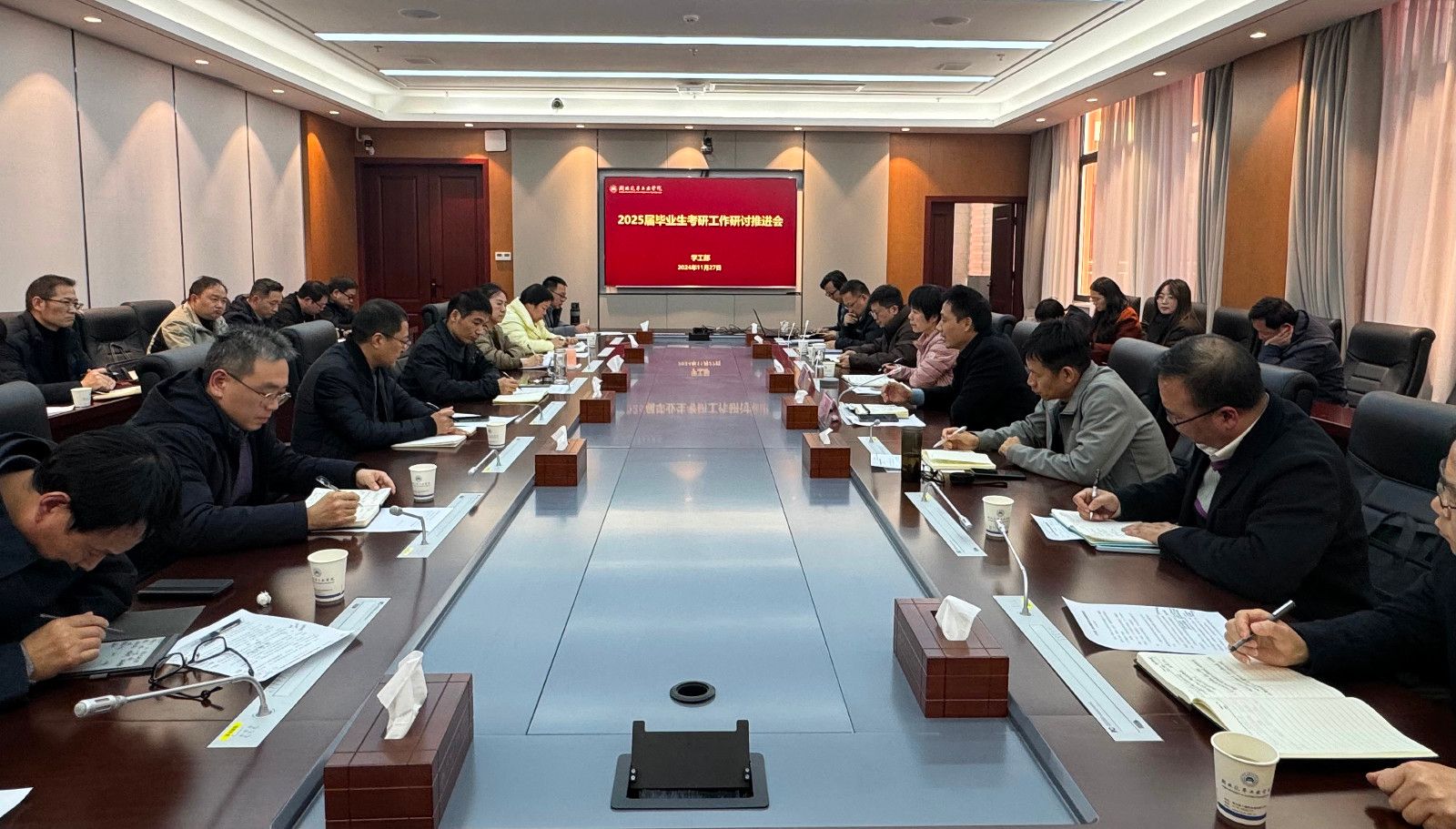 本网讯(文/图 徐鑫)为进一步凝聚共识,明确方向,努力开创beat365考研工作的新局面,促进学校高质量发展,11月27日下午,学校在产教大楼三楼多功能会议室召开2025届毕业生考研工作研讨推进会。校党委常委、副校长张红霞,校党委常委、党政办主任王文山出席会议,会议由学工部部长王关锋主持。