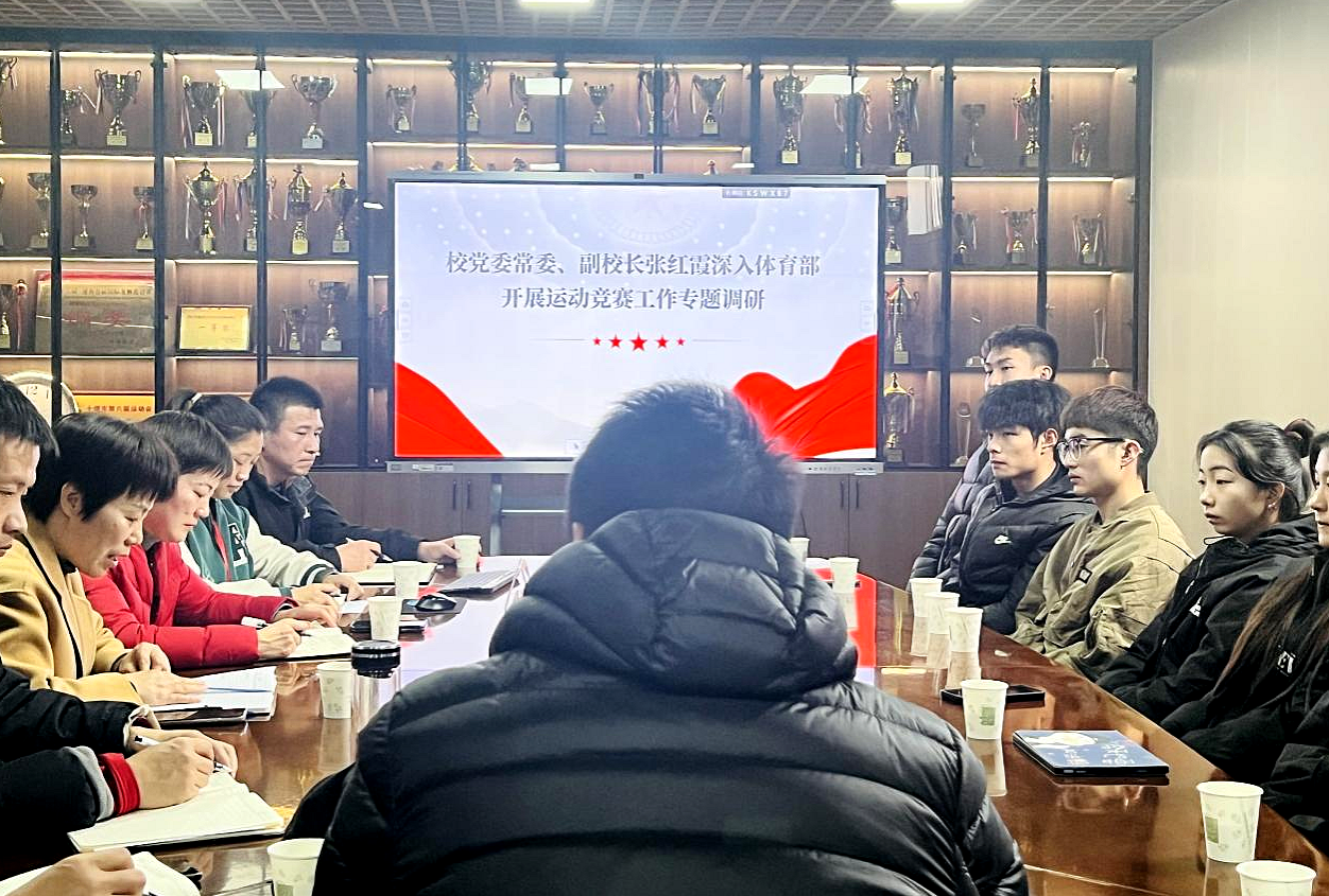 本网讯(文/图 王亚洲)12月26日下午,校党委常委、副校长张红霞深入体育部开展运动竞赛工作专题调研。体育部班子成员、教练员及各运动队学生代表参加座谈会。