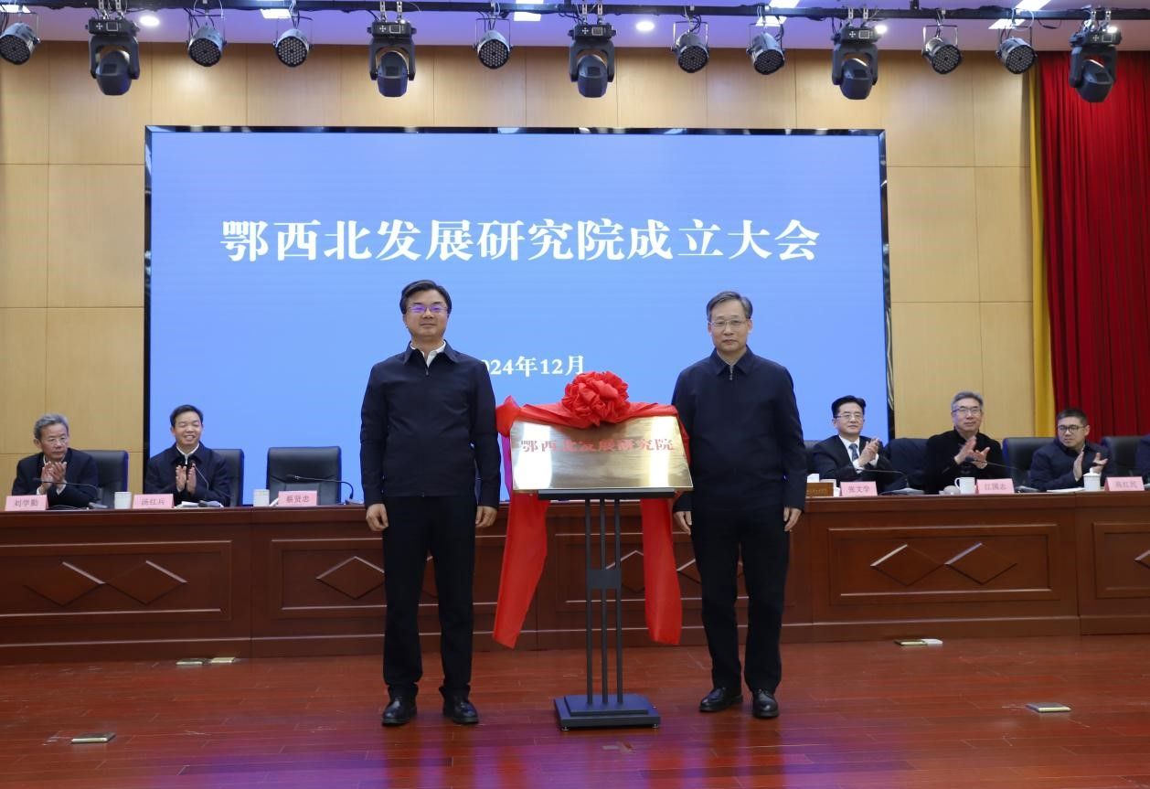 黄剑雄和刘爱国共同为鄂西北发展研究院揭牌。