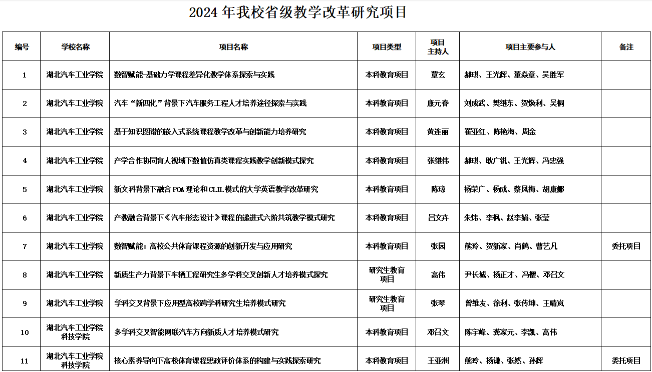 本网讯(文/姜清苹)近日,湖北省教育厅发布《关于公布2024年湖北本科高校省级教学改革研究项目的通知》(鄂教高函〔2025〕1号),beat365共11个项目获批立项,其中本科教育项目9个、研究生教育项目2个。