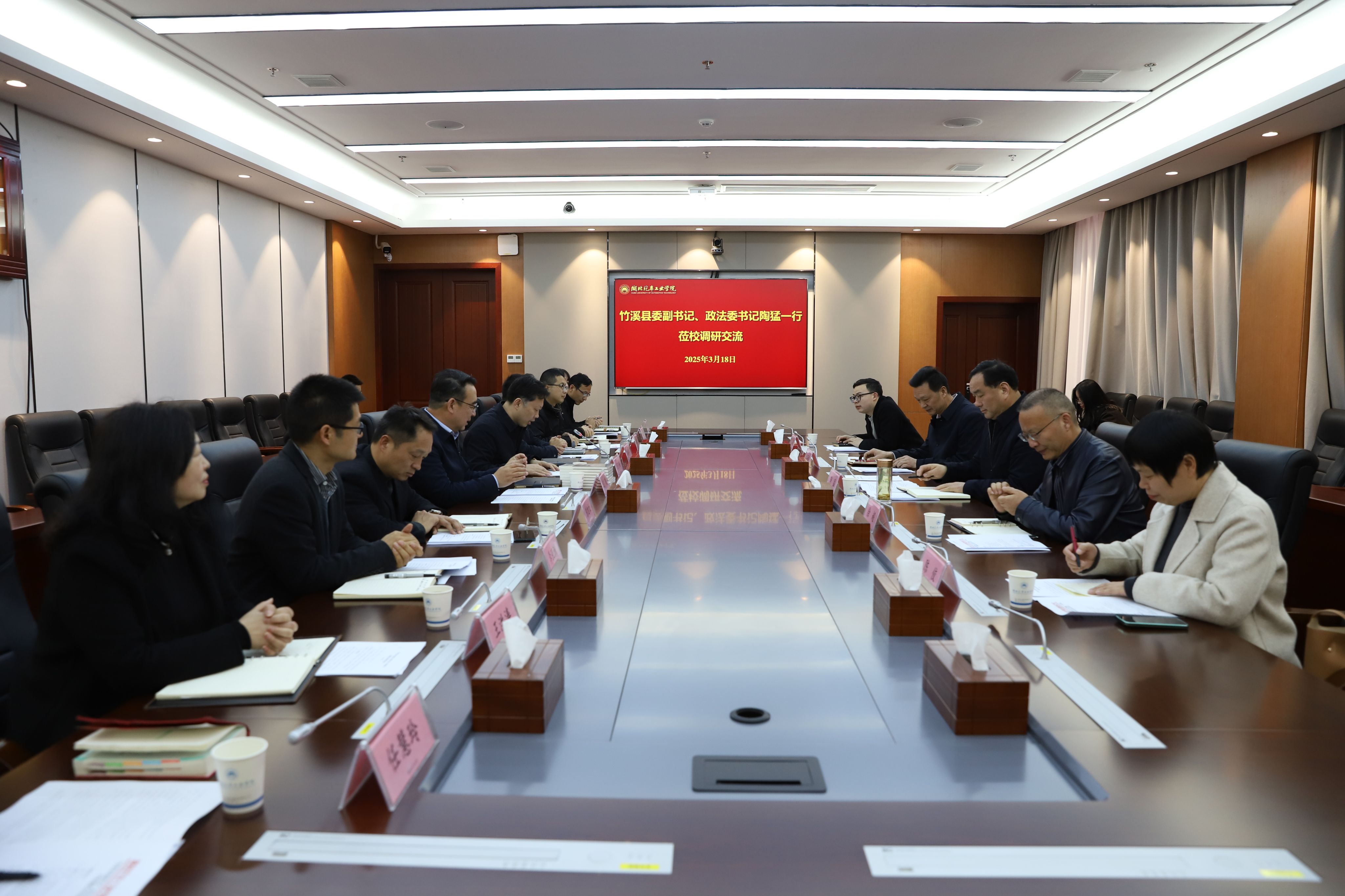 王晓代表学校对陶猛一行的到来表示热烈的欢迎,并简要介绍了beat365在线唯一官网、学科优势及校地双方合作背景。王晓指出,学校高质量发展离不开竹溪县委县政府的支持,此次校地双方进行合作交流,标志着学校与竹溪县的合作又向前迈进了一步。