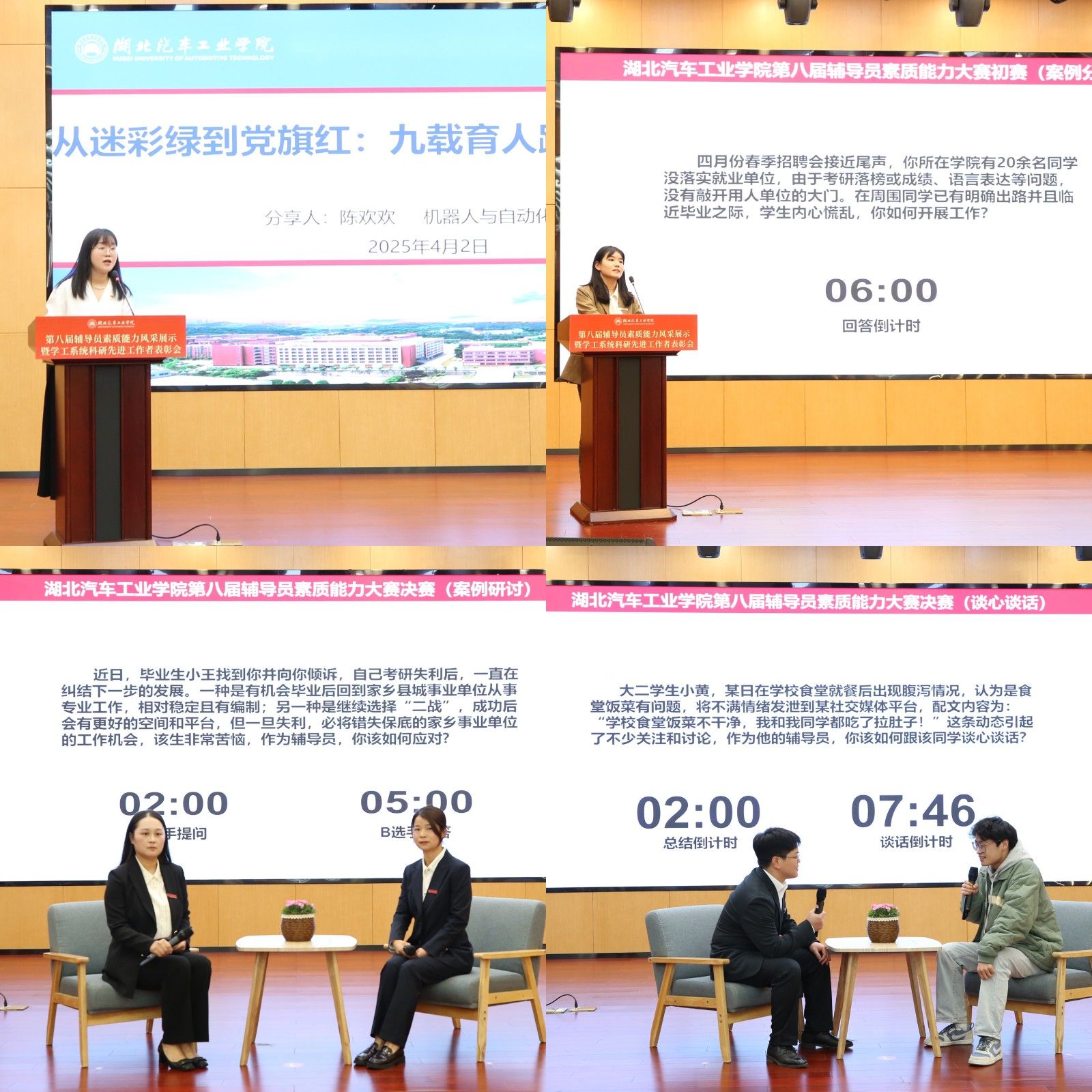 机器人与自动化学院陈欢欢、人工智能学院王净杰、汽车商学院张倩、汽车工程学院李雅琨和汽车智能制造学院钱坤进行辅导员素质能力风采展示,通过育人故事分享、案例分析、案例研讨和谈心谈话等环节探求解决思路,提出实施办法,彰显育人理念,充分展示了beat365辅导员扎实的职业功底。
