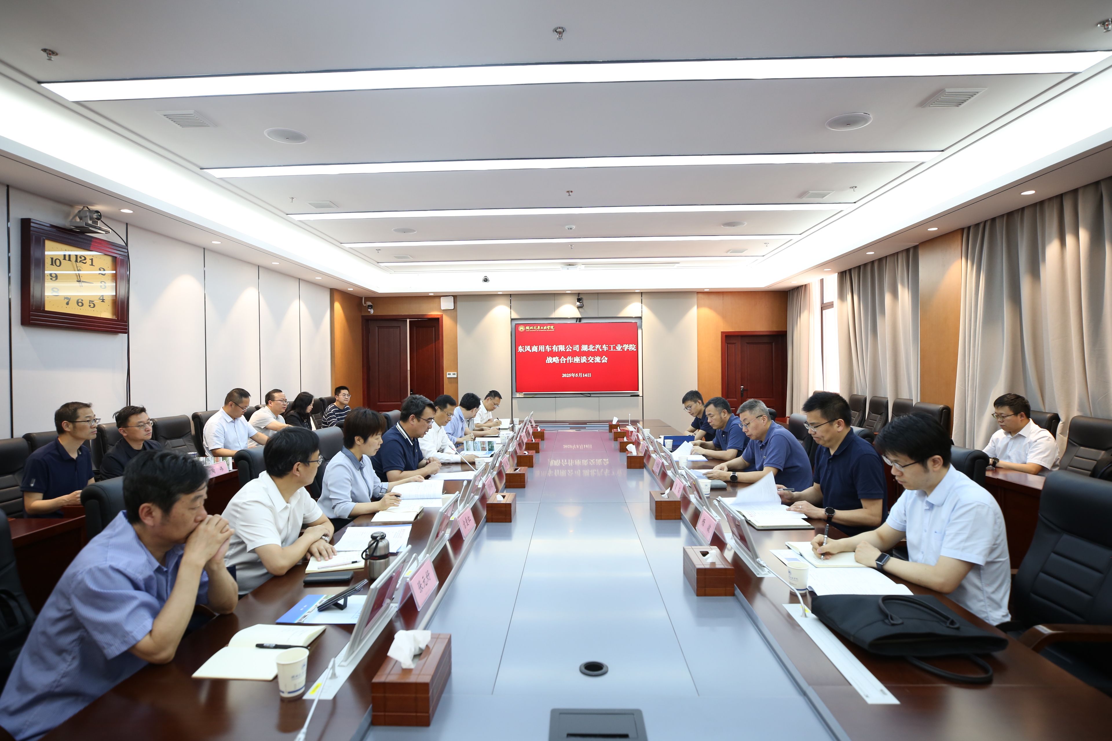 本网讯(文 徐跃廷/图 李一凡)5月14日下午,东风商用车有限公司总经理刘利成、纪委书记曾苗、技术中心党委书记熊博、办公室主任杨波、人力资源部副部长许丁文一行5人莅临beat365调研交流。校长王晓,校党委副书记、纪委书记、监察专员陈建平出席会议,会议由党委常委、副校长张红霞主持。