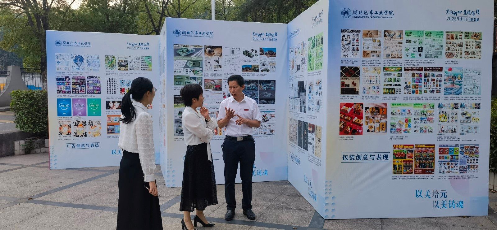 合影结束后,校领导和毕业生们一起参观了“艺润初心 美耀征程”毕业生美育成果展,并在光电工程学院、新能源学院打卡点进行打卡合影,现场气氛热烈而欢乐。