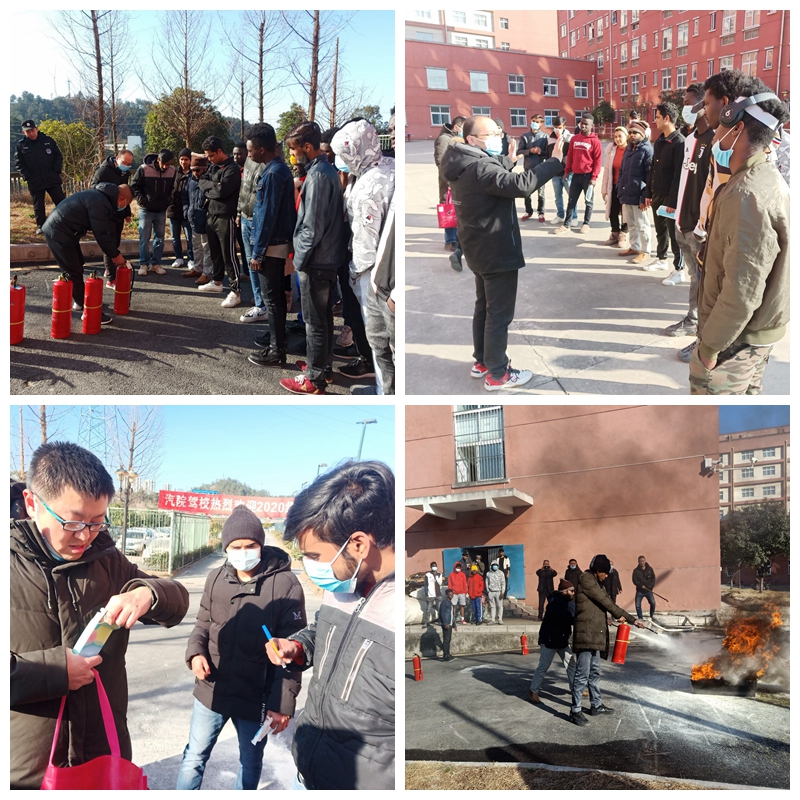 国际处副处长苏子波、留学生科科长方鹏、保卫处办公室主任赵伟、治安保卫科副科长李海庆、消防干事官杰、保安队队长徐传斌,国际处张婷婷参与了此次演练。国际处为留学生发放了防疫口罩及体温计,苏子波再次重申了寒假上报体温和位置打卡及安全问题的重要性。