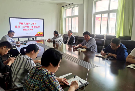 本网讯(文/图 李兵)5月17日下午,材料科学与工程学院成型系党支部在机材楼506会议室,开展“深化党史学习教育、擦亮双十星争创品牌”主题党日活动。会议由支部书记李兵主持,校党委书记程红兵以普通党员身份参与本次主题党日学习活动。