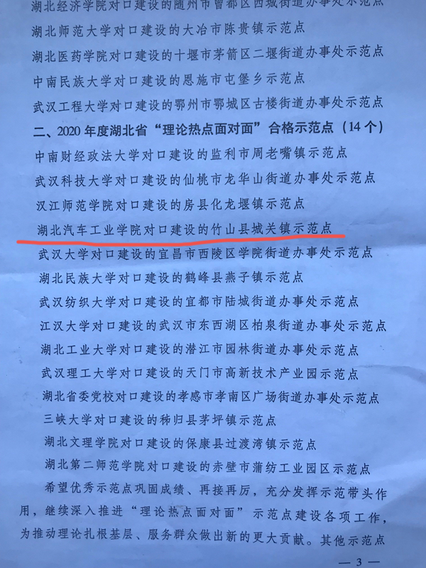 本网讯(文/图 谢超)2021年4月至5月,省委讲师团组织力量对全省24个“理论热点面对面”示范点进行了调研,根据调研结果,beat365在线唯一官网对口建设的竹山县城关镇示范点获评为合格示范点。