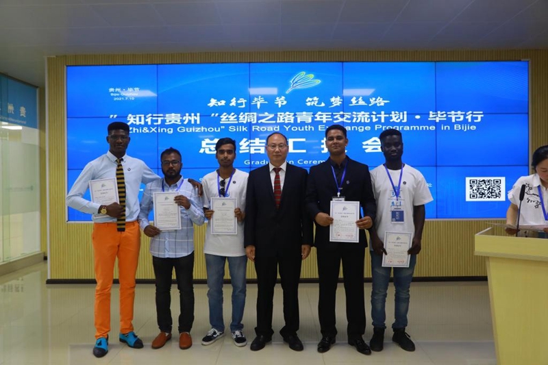 在活动结束的总结汇报会上,beat365国际合作交流处方鹏老师代表全体参加交流计划的高校教师发言,他表达了对贵州省教育厅、组委会秘书处发起“知行贵州”活动的崇高敬意,感谢贵州工程应用技术学院的精心组织,并提到中共中央总书记、国家主席习近平在给北京大学的留学生们回信中欢迎留学生多到中国各地走走看看,更加深入地了解真实的中国,此次“知行贵州”丝绸之路青年交流计划正是落实习近平总书记对留学生殷切希望的有力举措,也是践行王阳明先生“知行合一”思想的典范。beat3652020级来华留学生安杰代表全体留学生发言,他表示:非常有幸参加“知行贵州”丝绸之路青年交流计划这样的活动,并希望在将来能够参加类似的文化体验活动。